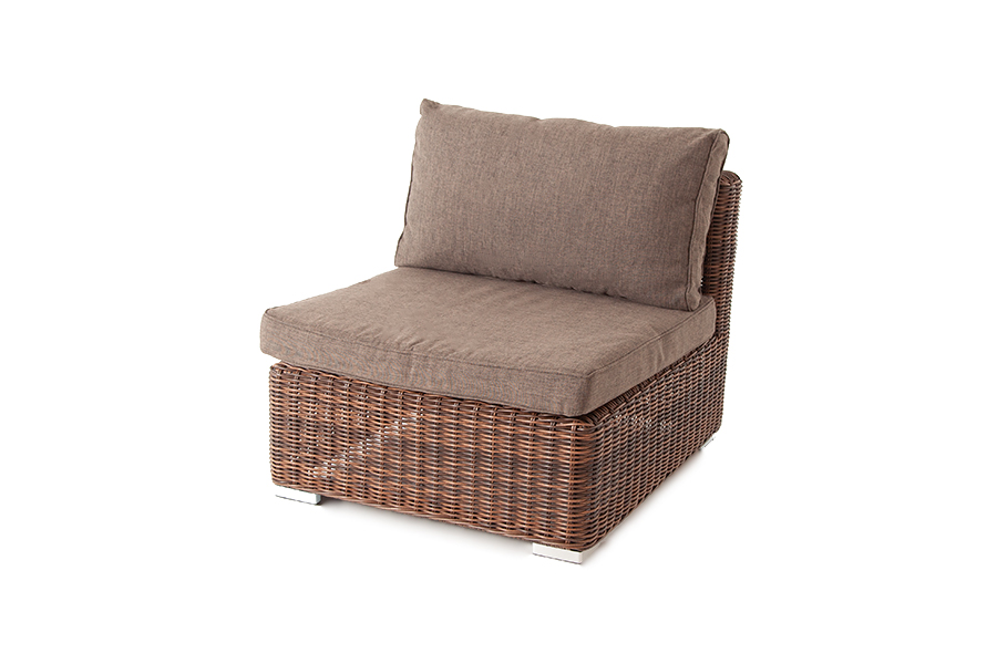 В качестве основы мебели используется алюминиевом каркас высокой прочности. Ее дополняет ручная оплетка, сделанная из круглого искусственного ротанга в коричневом оттенке.