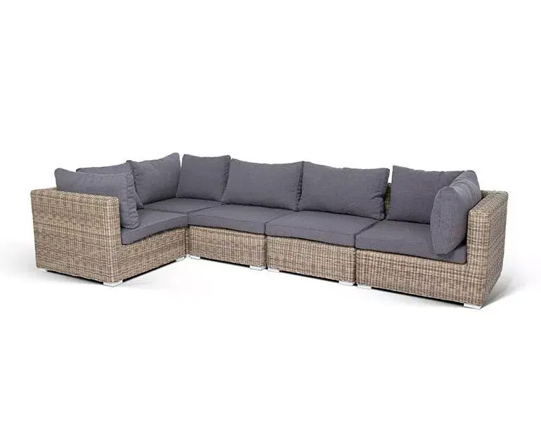 Трансформирующийся диван «Лунго» подходит для одновременного размещения пяти персон. Его каркас выполнен из прочного алюминия.