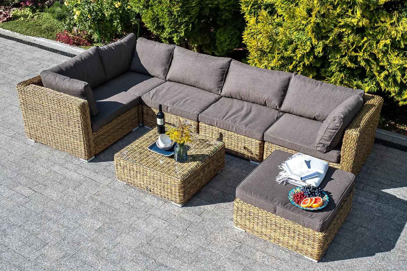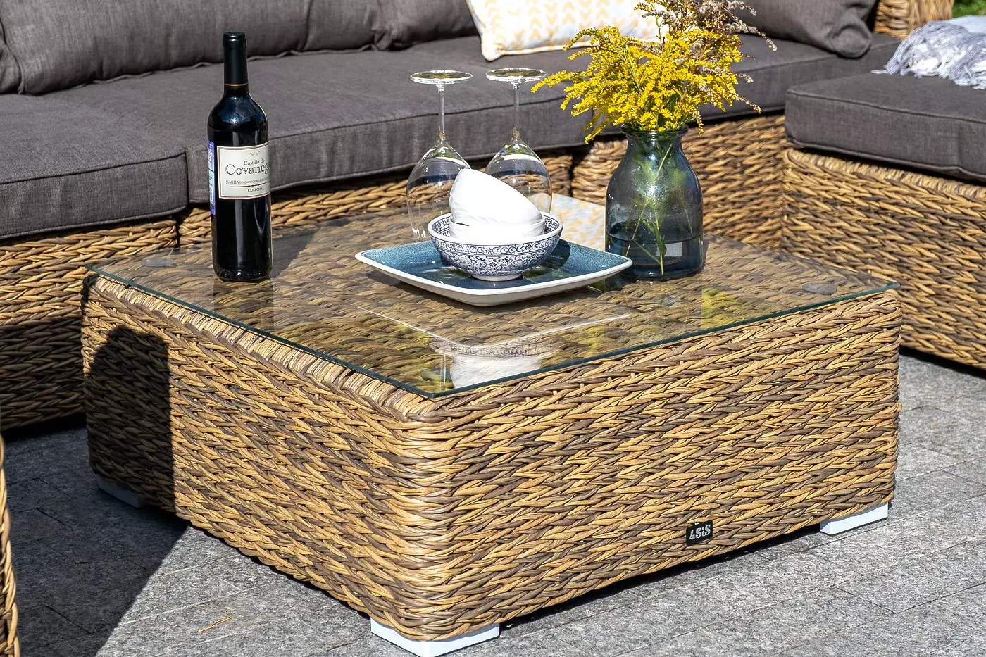 Размер модели – 740×740×300 мм. Компактные габариты позволяют удобно разместить мебельный элемент в месте с ограниченным свободным пространством. Столик имеет прочный алюминиевый каркас. Ручное плетение вида "гиацинт" сделано из искусственного ротанга и представлено в соломенном цвете.