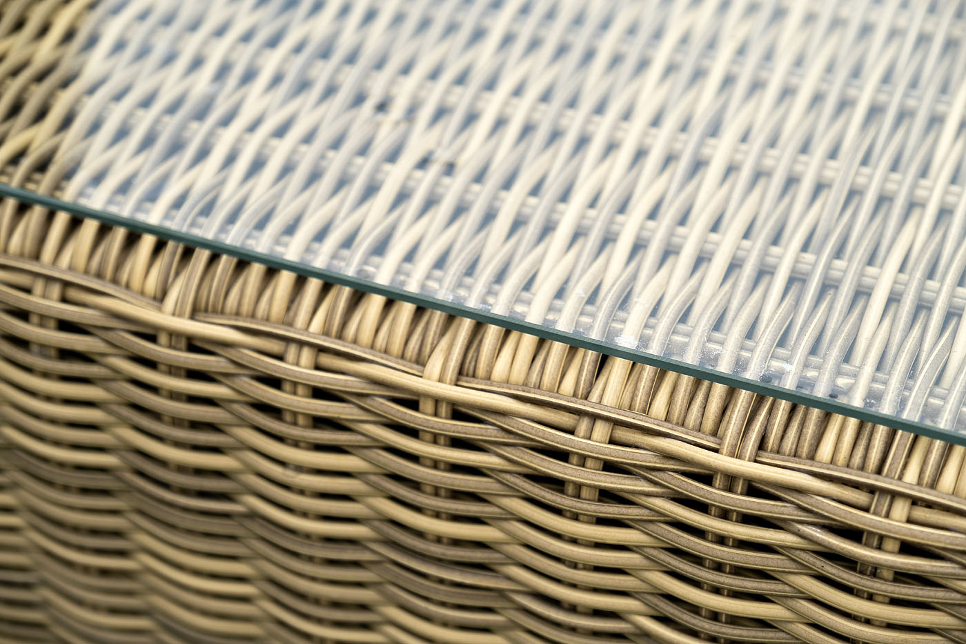 Компактные габариты позволяют удобно разместить мебельный элемент в месте с ограниченным свободным пространством. Столик имеет прочный алюминиевый каркас. Ручное круглое плетение сделано из искусственного ротанга и представлено в соломенном цвете.