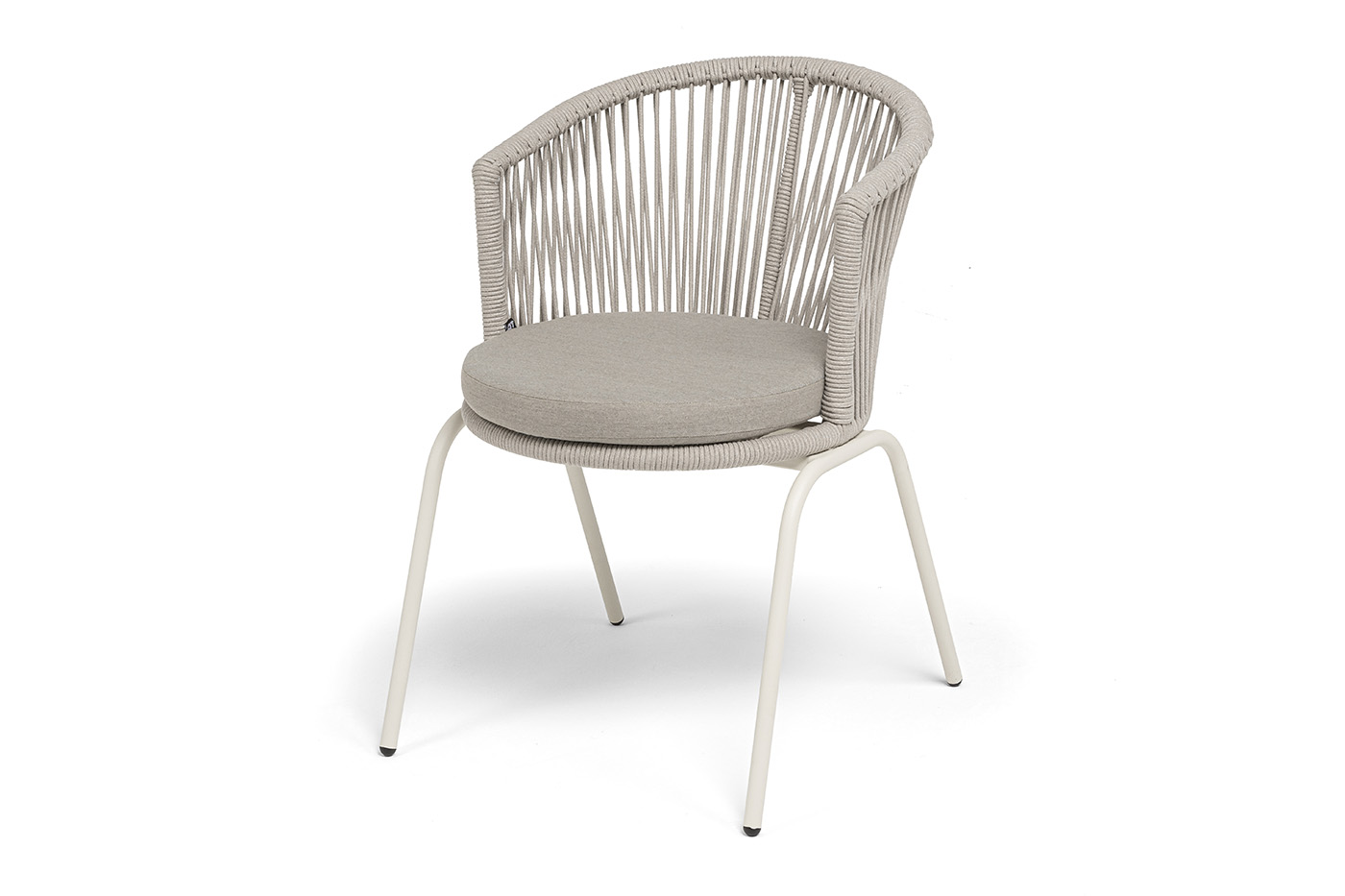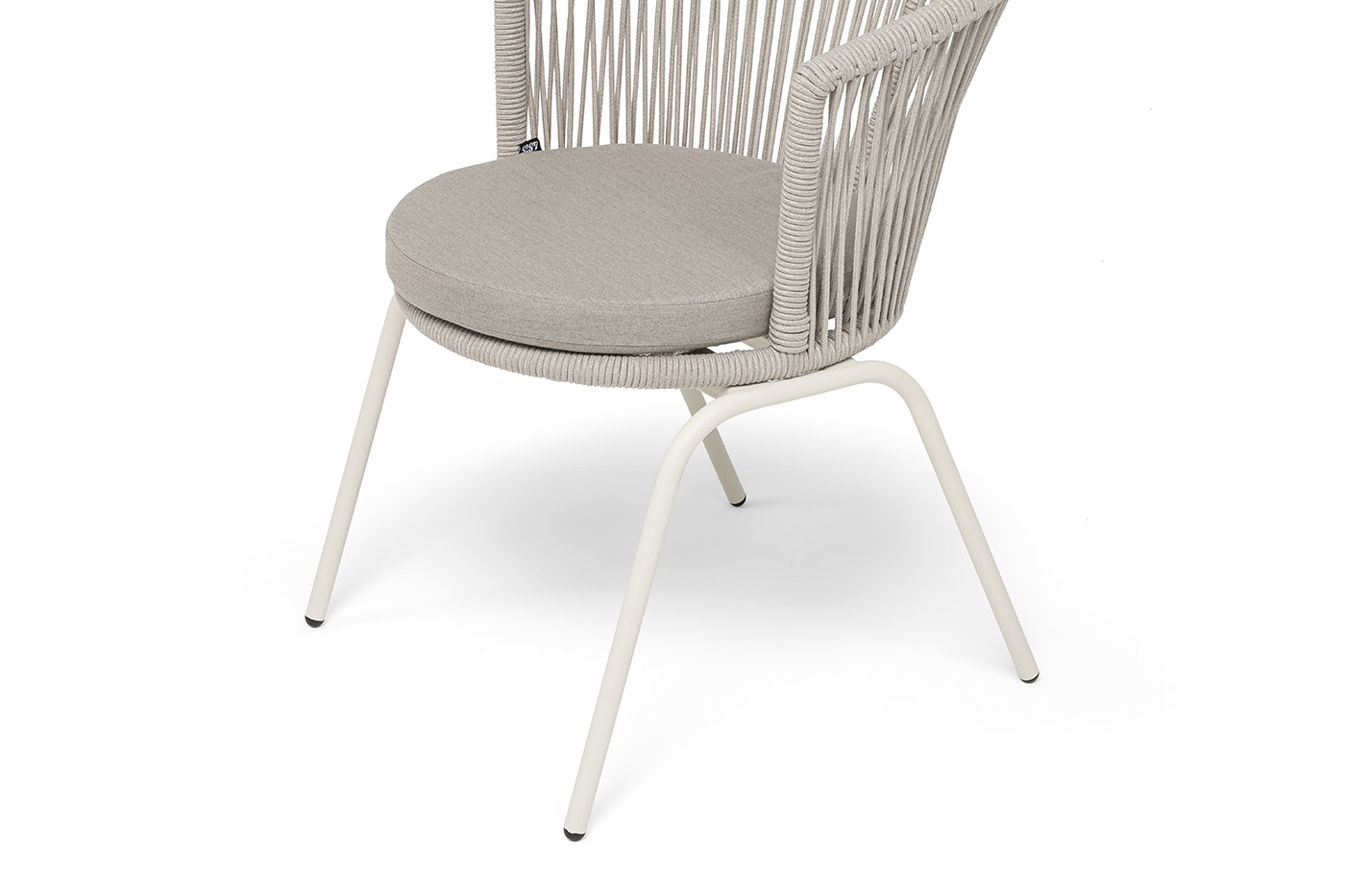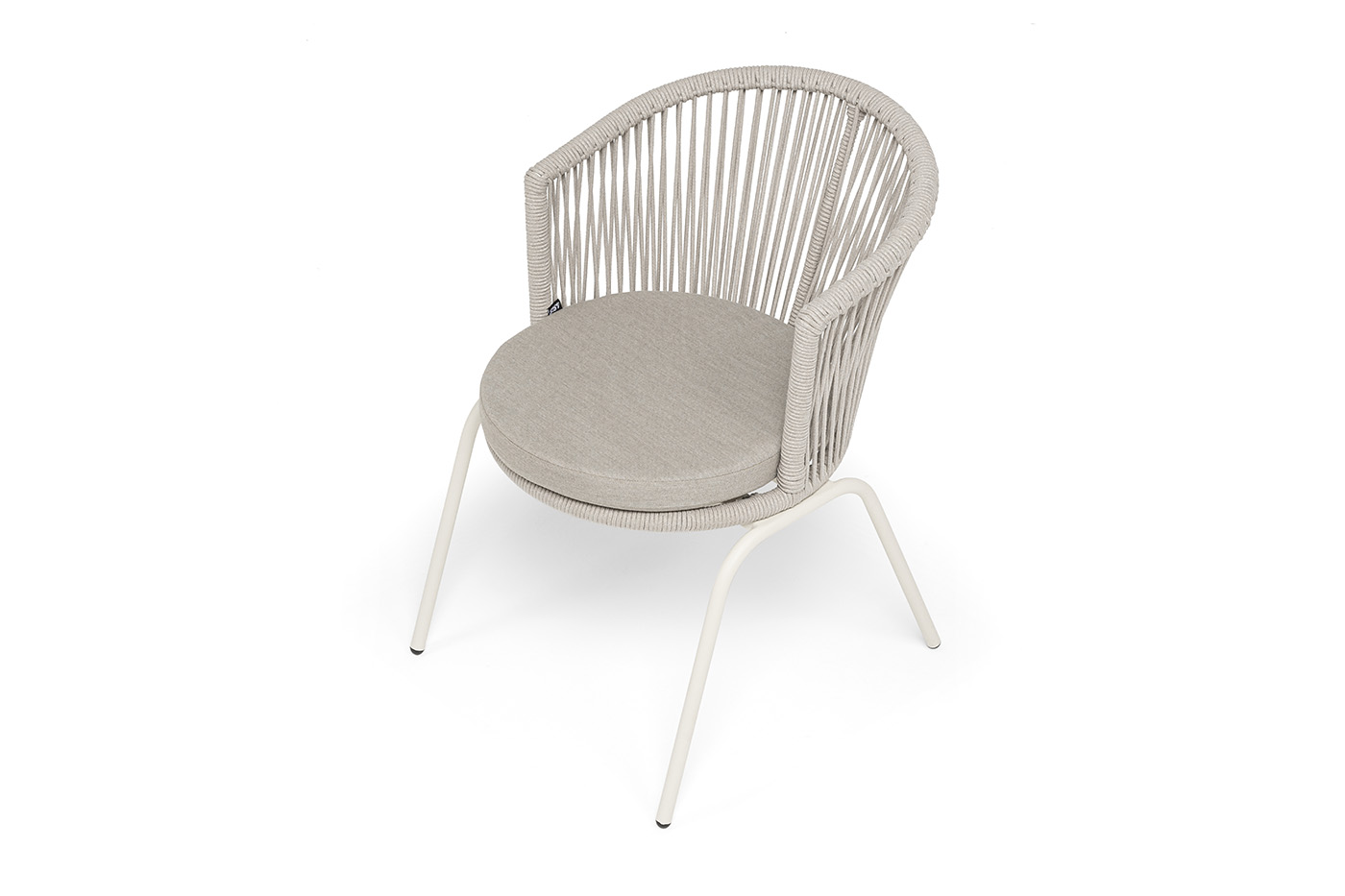 Выполнен из стального каркаса, окрашенного в жемчужно-белый (RAL1013) цвет. Оплетка - современный материал «роуп», которым каркас оплетался вручную.