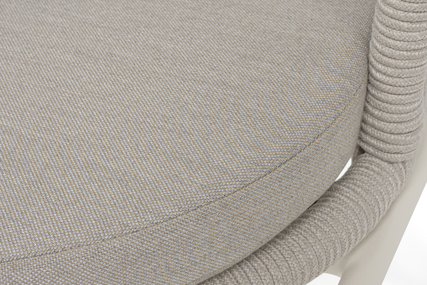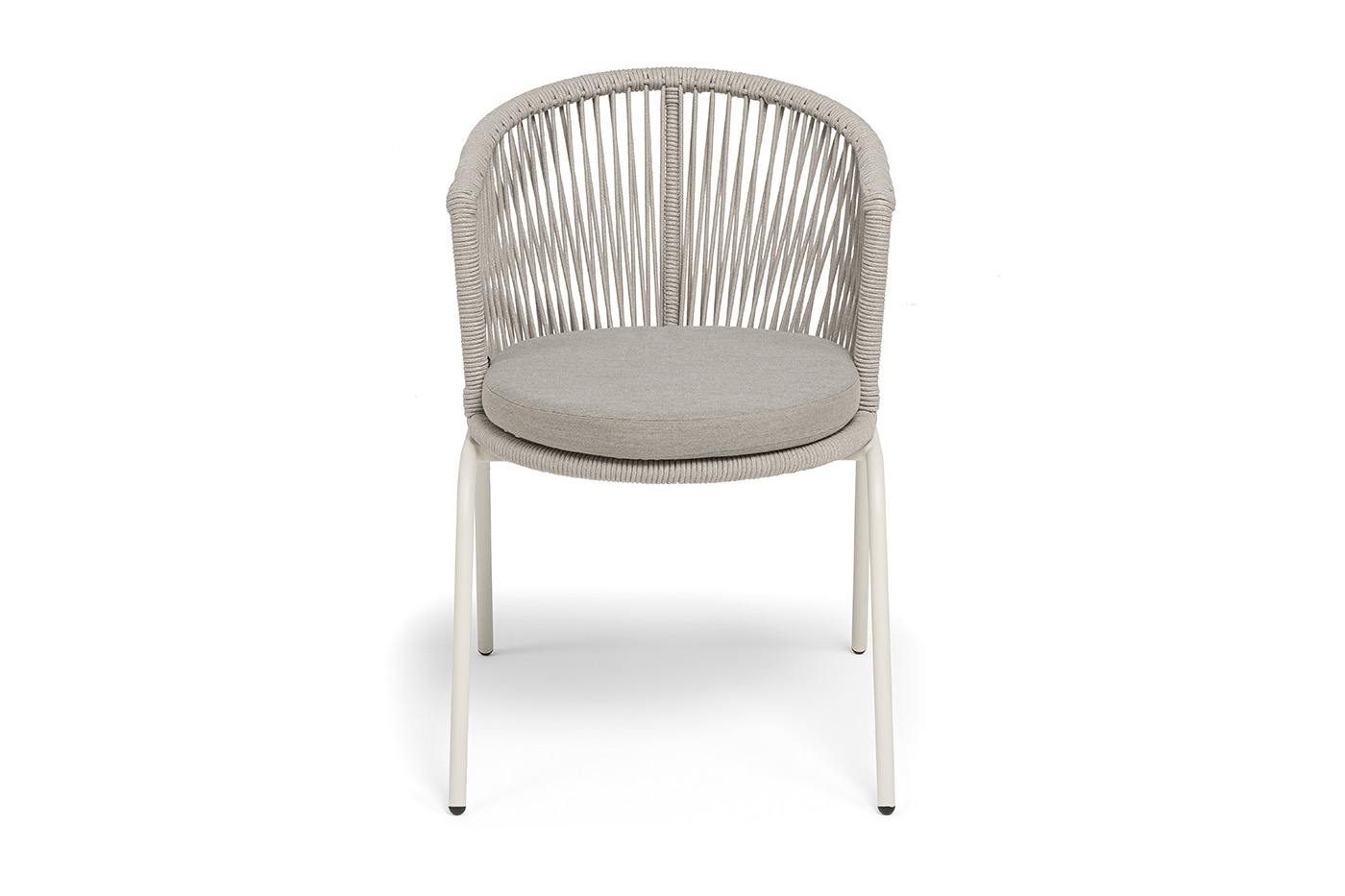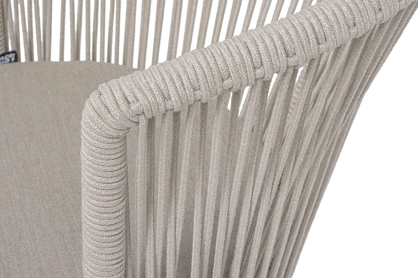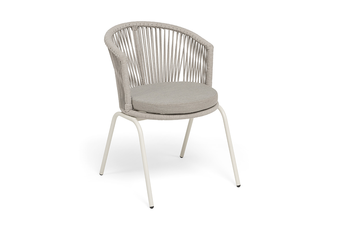 Выполнен из стального каркаса, окрашенного в жемчужно-белый (RAL1013) цвет. Оплетка - современный материал «роуп», которым каркас оплетался вручную.