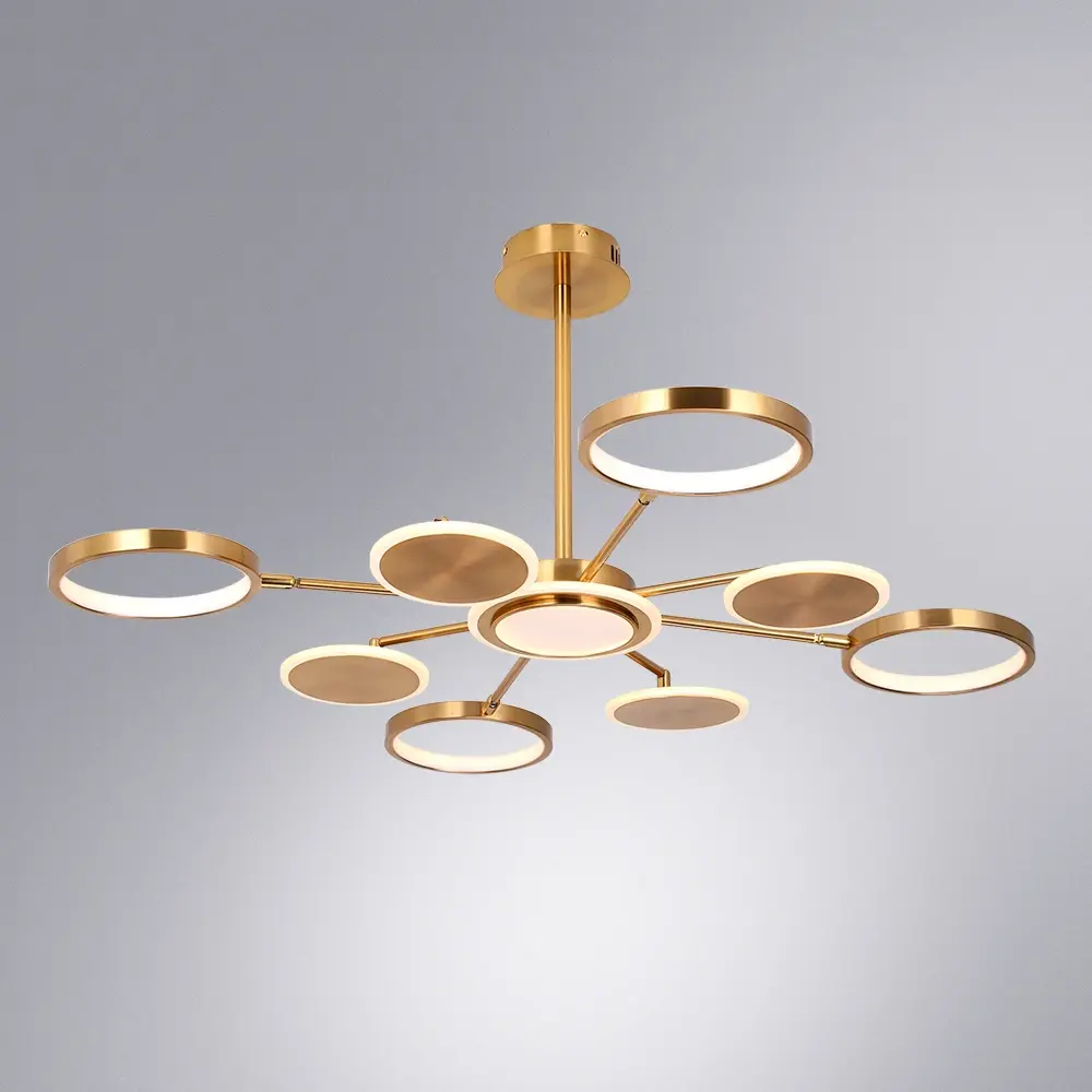 Светильник A1363PL-8PB серии . Оживит ваш интерьер. Высота 42 cm. Диаметр 102 cm Параметры пылевлагозащиты IP — 20. Форма декоративная. Плафон пластиковый белого цвета, а материал/цвет арматуры металл/медный. Имеются встроенные светодиодные лампы, рассчитанные на весь срок службы светильника. Площадь освещения охватывает 13 m2. Идеально подходит для спальни или гостиной. Страна происхождения бренда — ИТАЛИЯ. Вес с упаковкой 4.4 kg