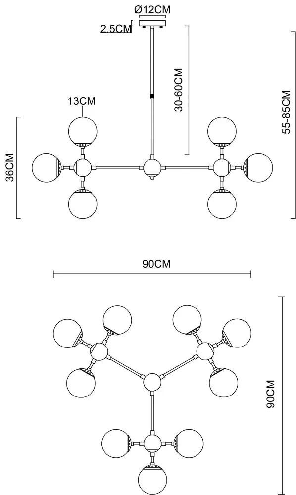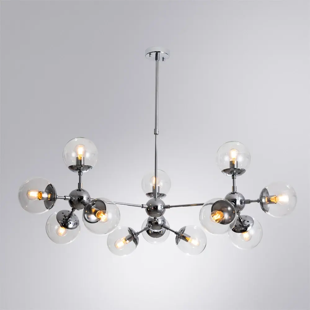 Светильник A1664SP-12CC серии . Освежит ваш интерьер. Размеры 90x90x36 cm. Диаметр 90 cm Параметры пылевлагозащиты IP — 20. Форма круглая. Плафон стеклянный прозрачный, а материал/цвет арматуры металл/хром. Использует лампу с цоколем E14. Площадь освещения охватывает 24 m2. Идеально подходит для гостиной. Страна происхождения бренда — ИТАЛИЯ. Вес с упаковкой 5.4 kg