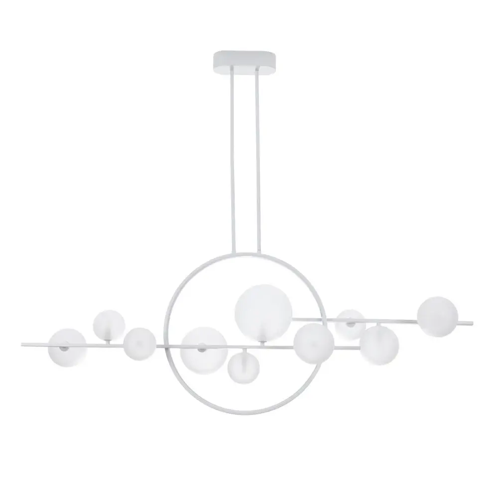 Люстра от Arte Lamp с пятью плафонами на штанге создает современное и строгое освещение. Белые акриловые плафоны направляют свет вниз, обеспечивая четкое и равномерное распределение света. Конструкция из белого алюминия выглядит легко и лаконично. Модель использует светодиодные лампы и монтируется на потолок, идеально вписываясь в интерьеры в современном стиле.