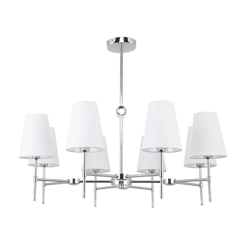 Светильник A4104LM-8CC серии . Создаст в помещении атмосферу комфорта. Высота 65 cm. Диаметр 83 cm Параметры пылевлагозащиты IP — 20. Форма декоративная. Плафон текстильный белого цвета, а материал/цвет арматуры металл/хром. Использует лампу с цоколем E14. Площадь освещения охватывает 20 m2. Идеально подходит для гостиной или спальни. Страна происхождения бренда — Италия.