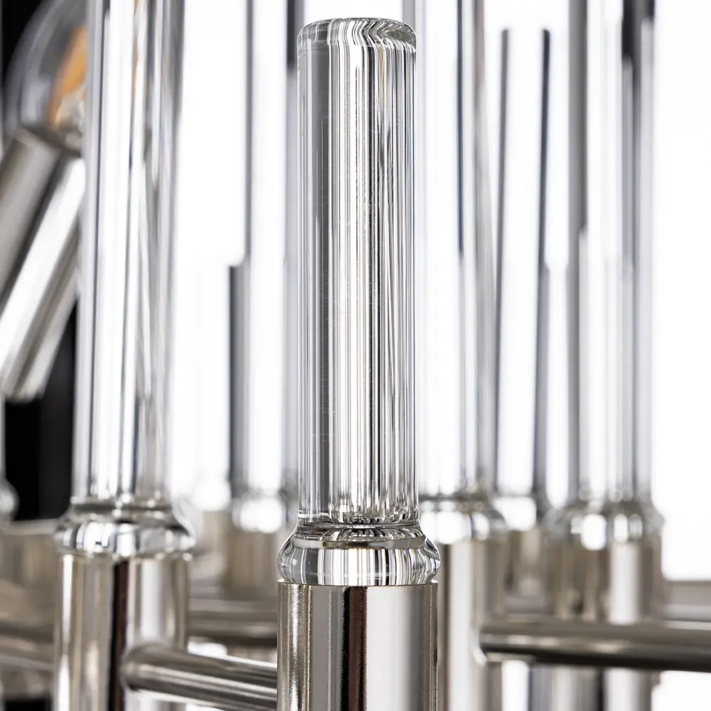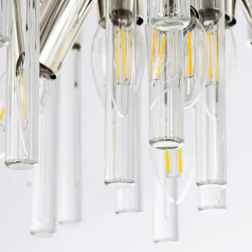 Люстра от ARTE LAMP создает элегантную атмосферу в стиле арт-деко. Десять прозрачных стеклянных плафонов, направленных вверх и вниз, обеспечивают равномерное и комфортное освещение. Хромированная металлическая арматура на штанге придает модели строгий и современный вид. Конструкция крепится на потолок при помощи надежной скобы. Люстра рассчитана на использование ламп накаливания и гармонично впишется в интерьер гостиной или столовой.