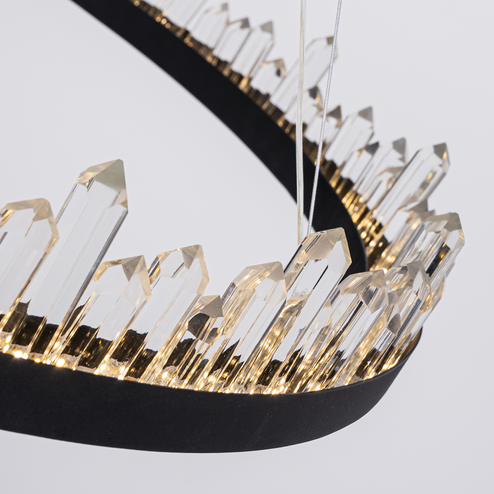 Люстра QUARTZ D40 с кольцевым каркасом, оформленным кварцевыми кристаллам различной формы. Свет от встроенный LED матриц, пропущенный через призму кристаллов, заставит поверить в существование загадочных сокровищ древних цивилизаций. Представлены живые фото из нашего шоурума, а также видеообзор на данную модель можно посмотреть во вкладке "Видео".
