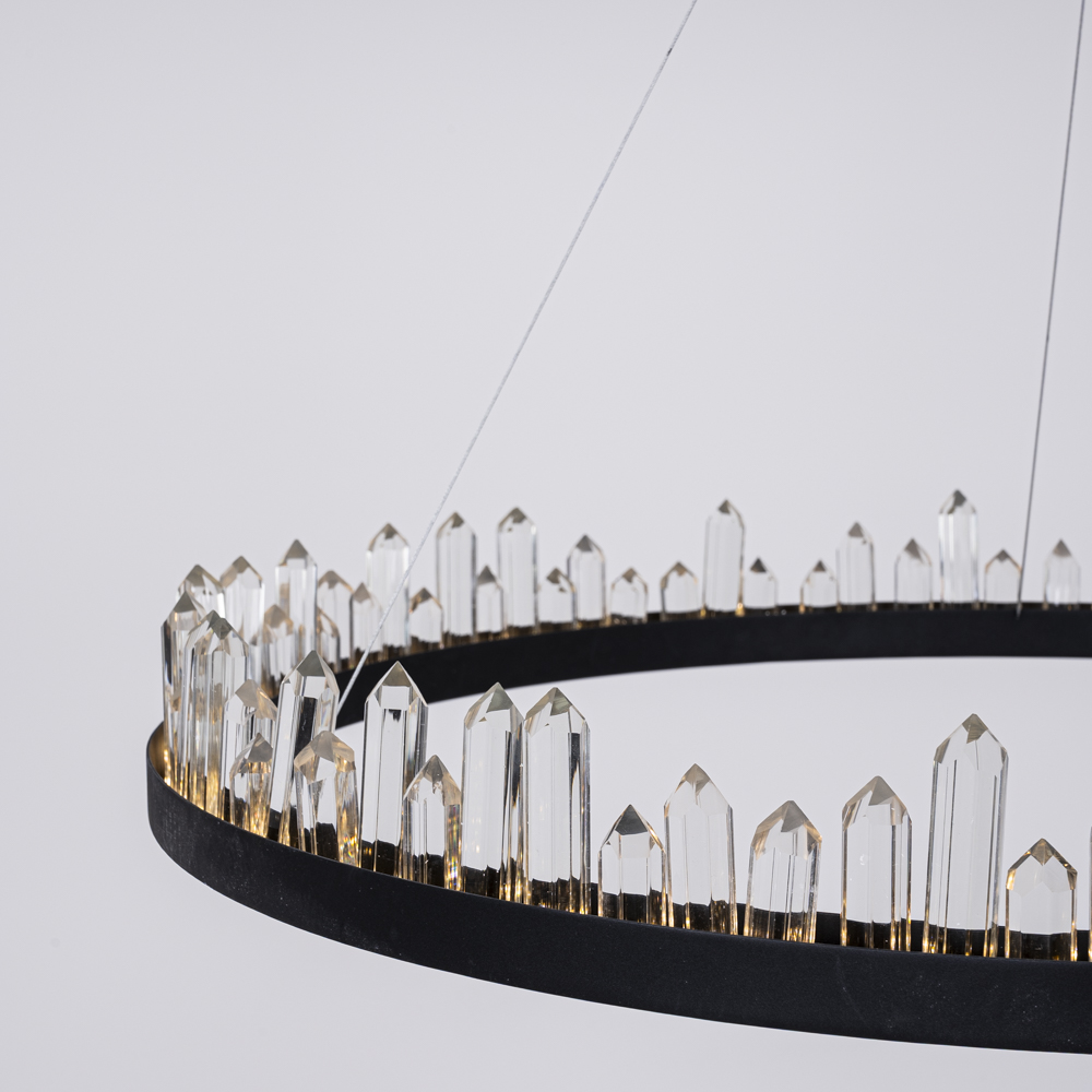 Люстра QUARTZ D90 с кольцевым каркасом, оформленным кварцевыми кристаллам различной формы. Свет от встроенный LED матриц, пропущенный через призму кристаллов, заставит поверить в существование загадочных сокровищ древних цивилизаций.Представлены живые фото из нашего шоурума, а также видеообзор на данную модель можно посмотреть во вкладке "Видео". Шикарная и изысканная люстра QUARTZ D90 станет ярким украшением любого интерьера. Ее утонченный дизайн и кристальная основа создадут эффектное освещение и добавят роскоши в любое помещение. Сочетание хромированных элементов и кристаллов придадут вашему дому уют и стиль. Люстра QUARTZ D90 - это не только функциональное освещение, но и изысканный элемент декора, который подчеркнет ваш безупречный вкус.