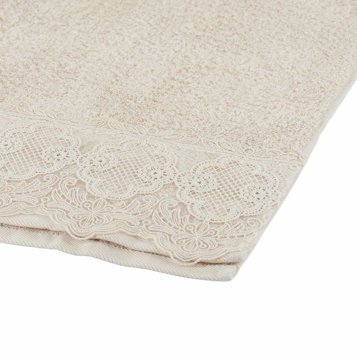 Полотенце Gipfel MERLETTO 47112. Размер 50x90 см. Полотенце сделано из 100% бамбукового волокна, плотность нити 500 гр/м2. Махровое полотенце невероятно мягкое и выполнено из натурального материала бежевого цвета. Украшено по краю широкой кружевной лентой. Большой размер позволяет использовать полотенца и для ребенка, и для взрослого после душа.
