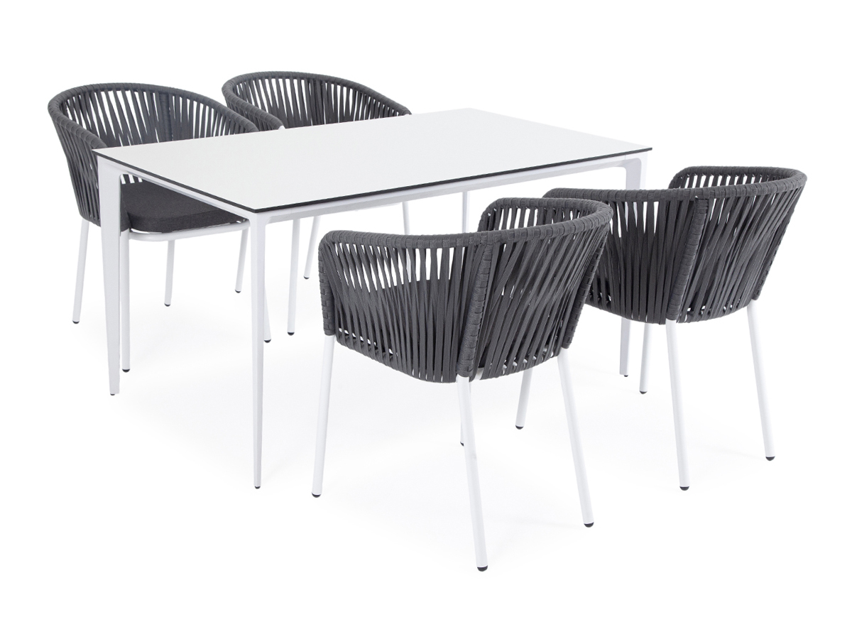 - 4 плетеных стула «Бордо» из плоского роупа, размером - 570×620×775 мм, цвет роупа - серый, каркас - белый.