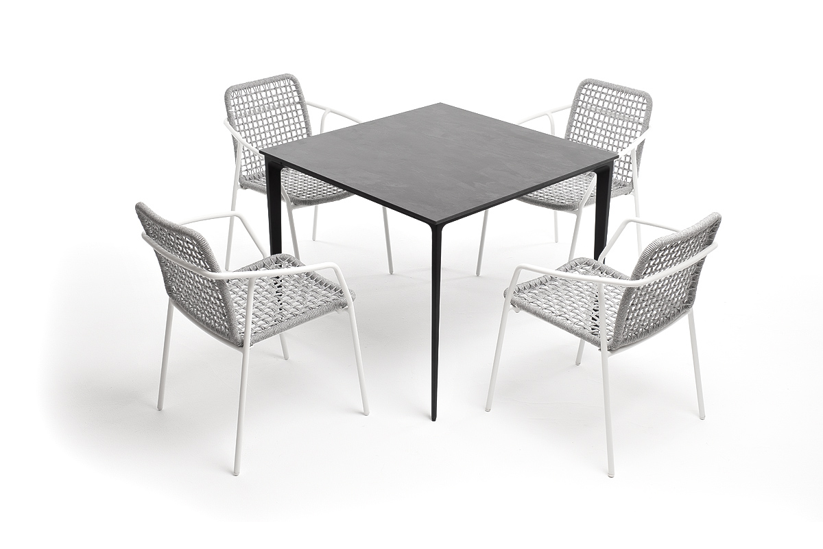 - Стол «Малага» со столешницей из HPL-пластика, размер столешницы - 900×900 мм, цвет - «серый гранит». Высота стола - 750 мм
