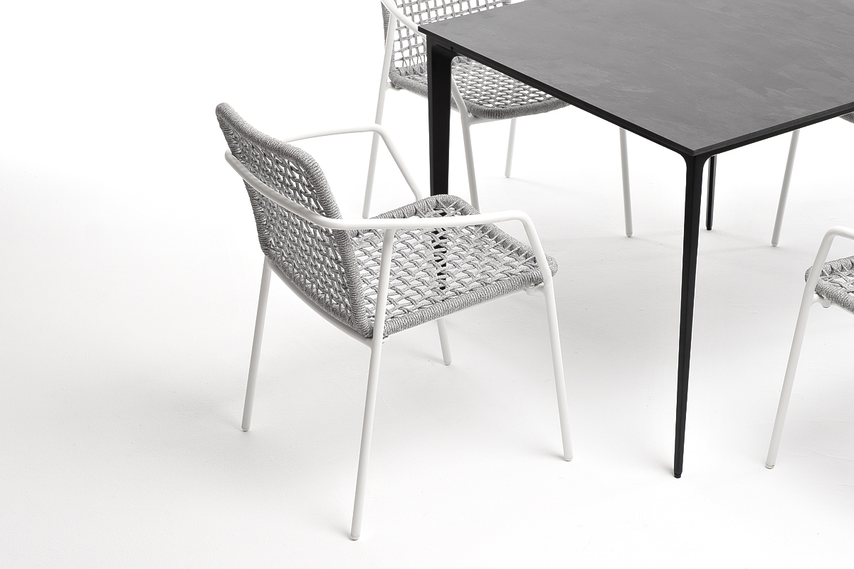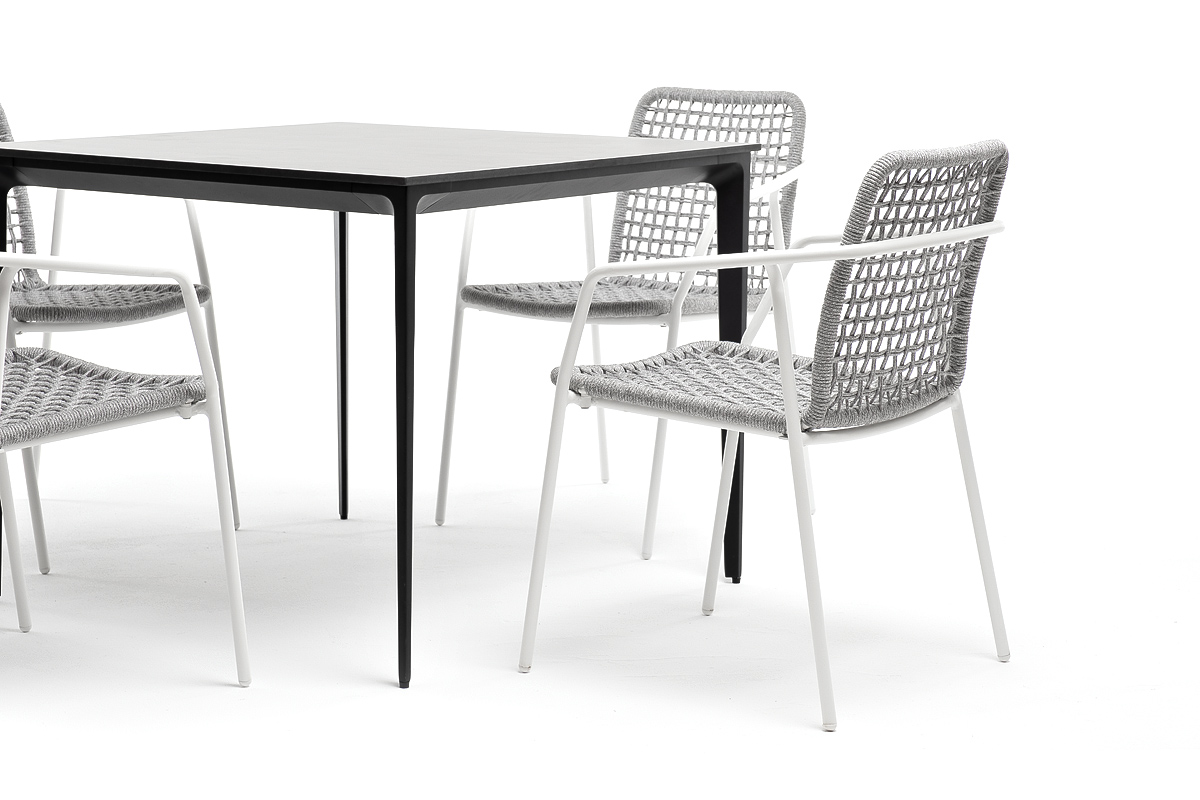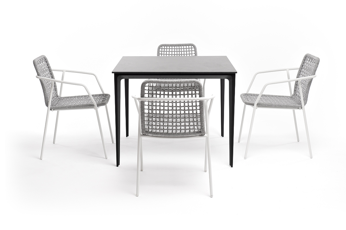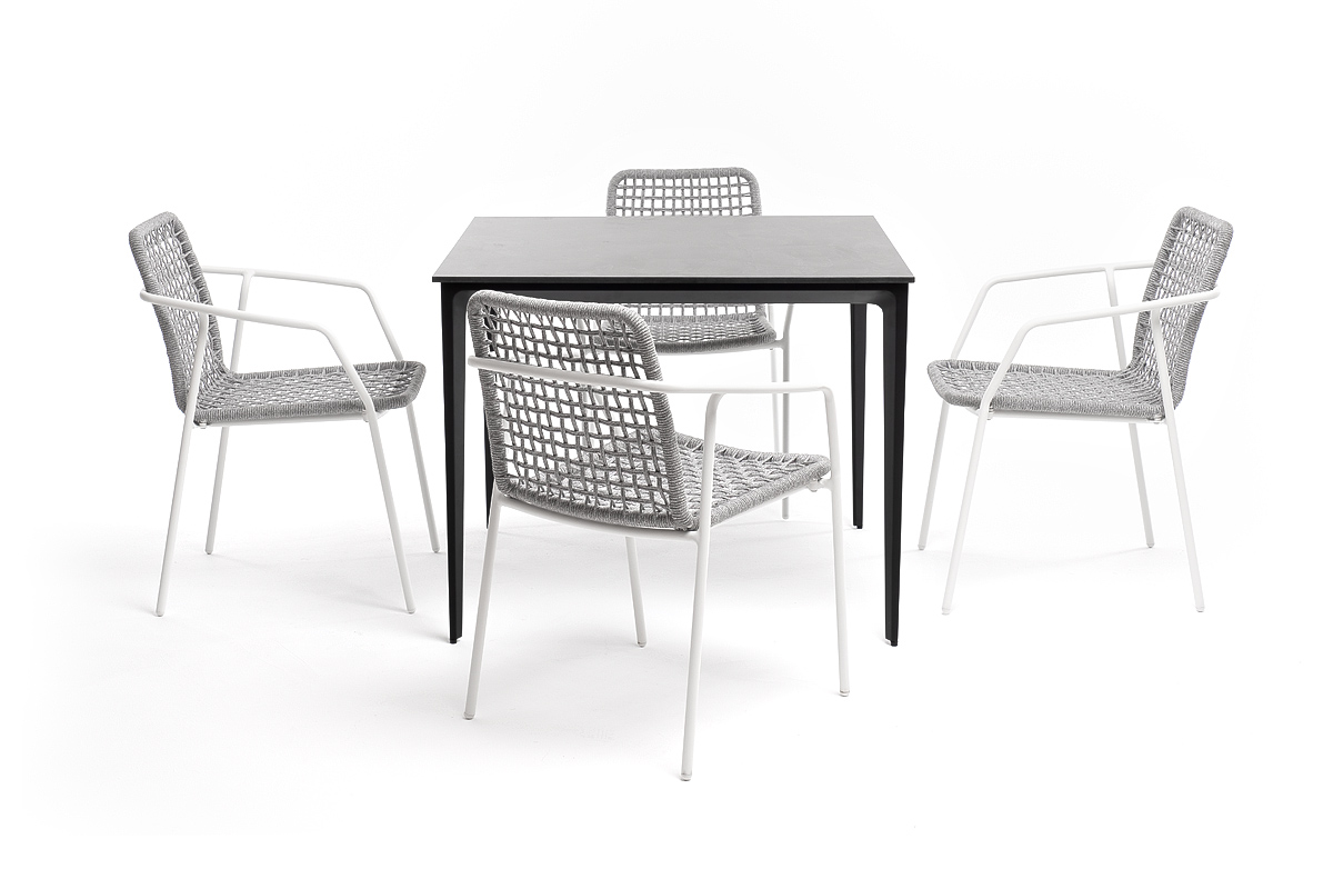 - 4 плетеных стула «Тунис» из роупа, размером - 580×600×800 мм, цвет роупа - светло-серый, каркас - белый.