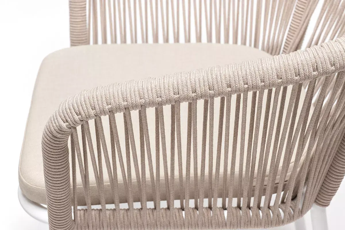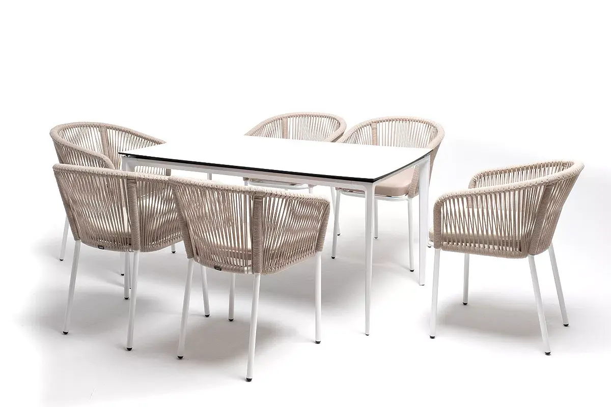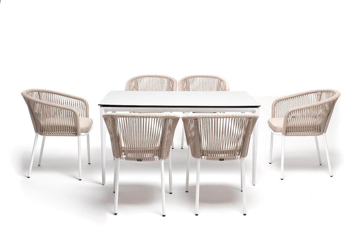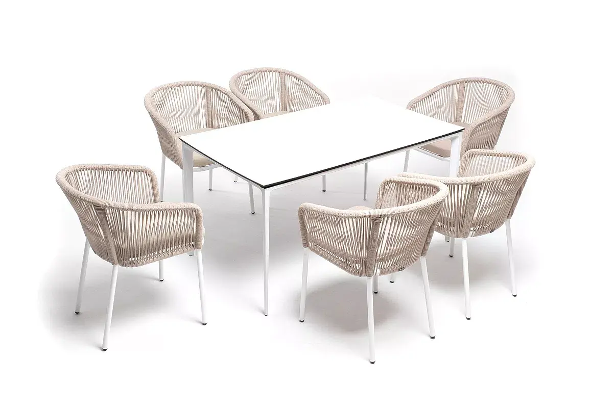 - 6 плетеных стульев «Марсель» из роупа, размером - 570×620×77,5 мм, цвет роупа - бежевый, каркас - белый.