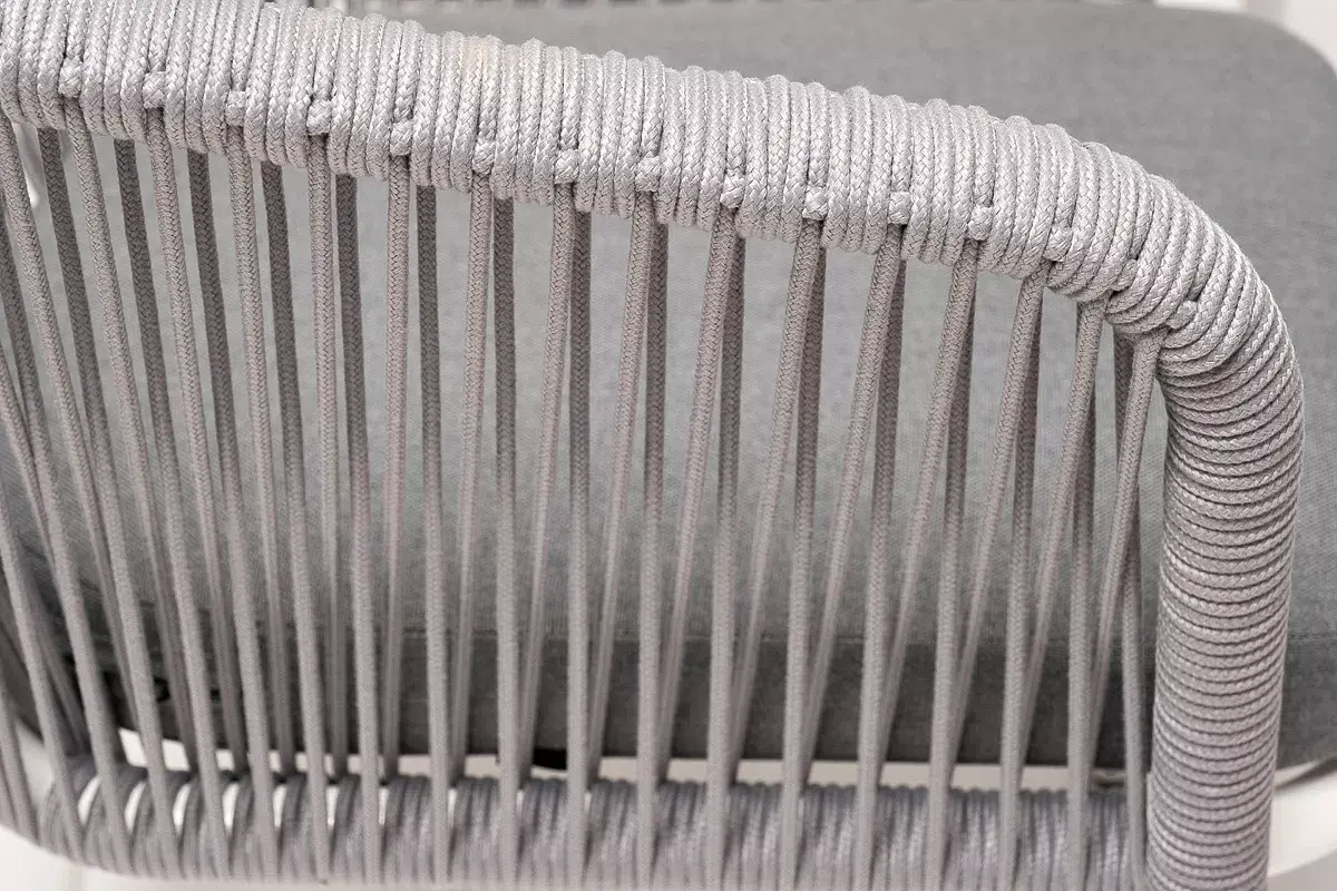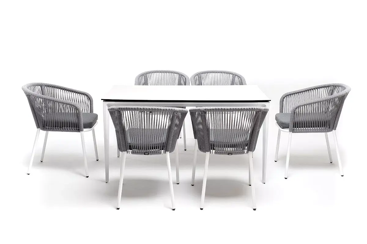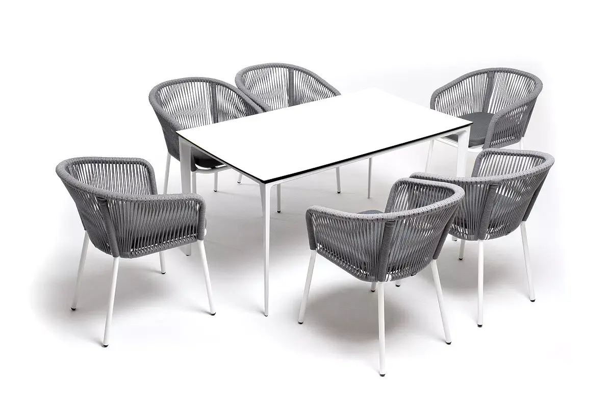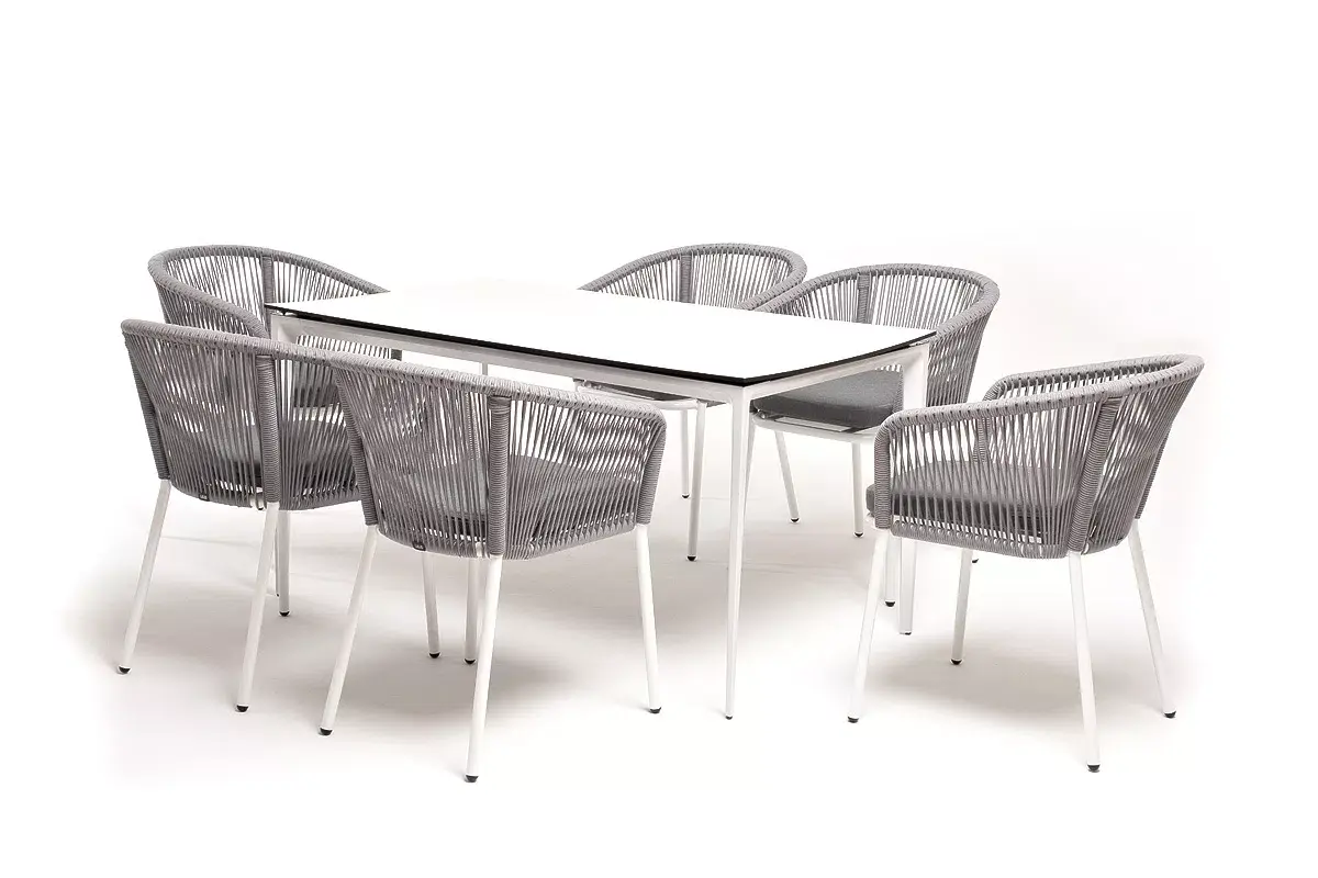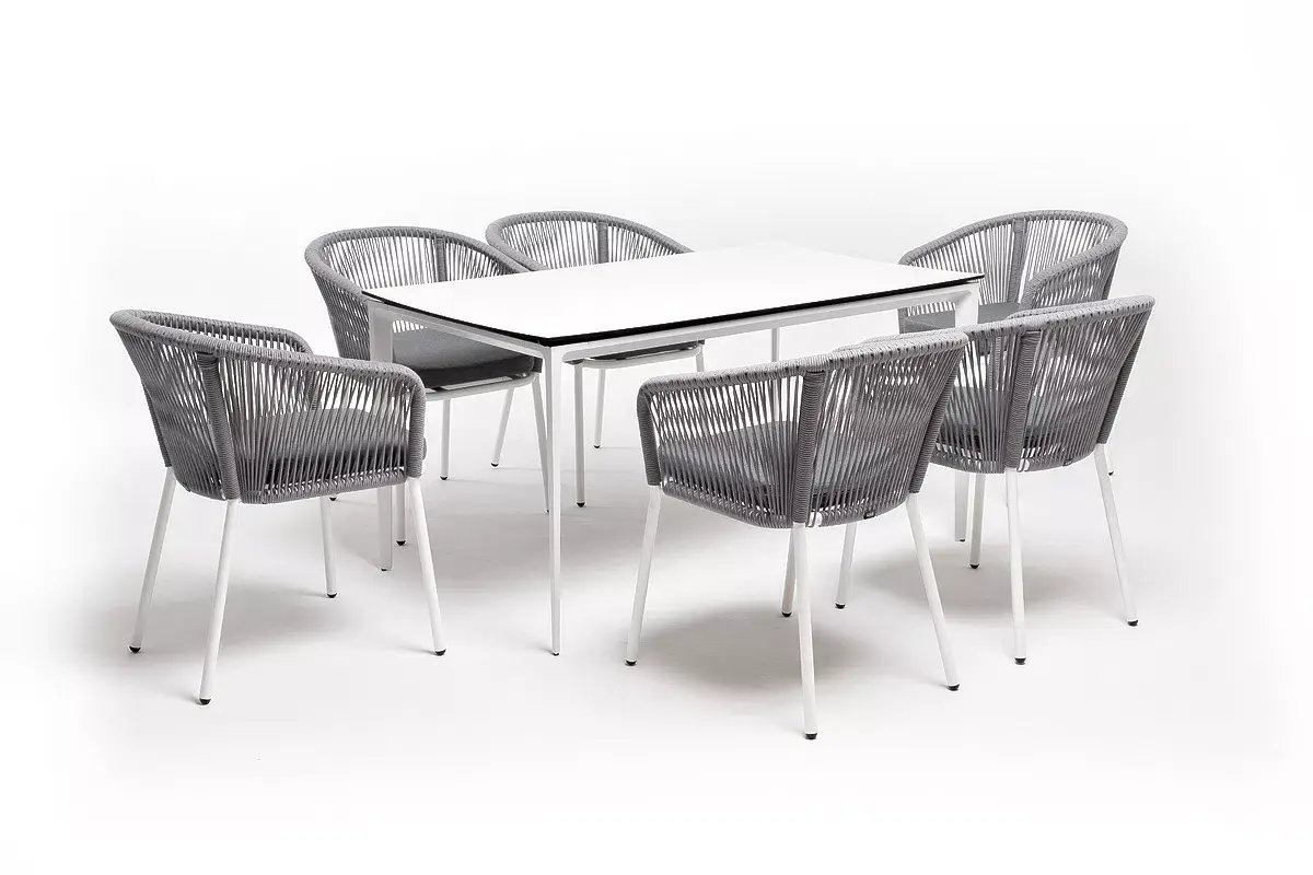 - 6 плетеных стульев «Марсель» из роупа, размером - 570×620×775 мм, цвет роупа - светло-серый, каркас - белый.