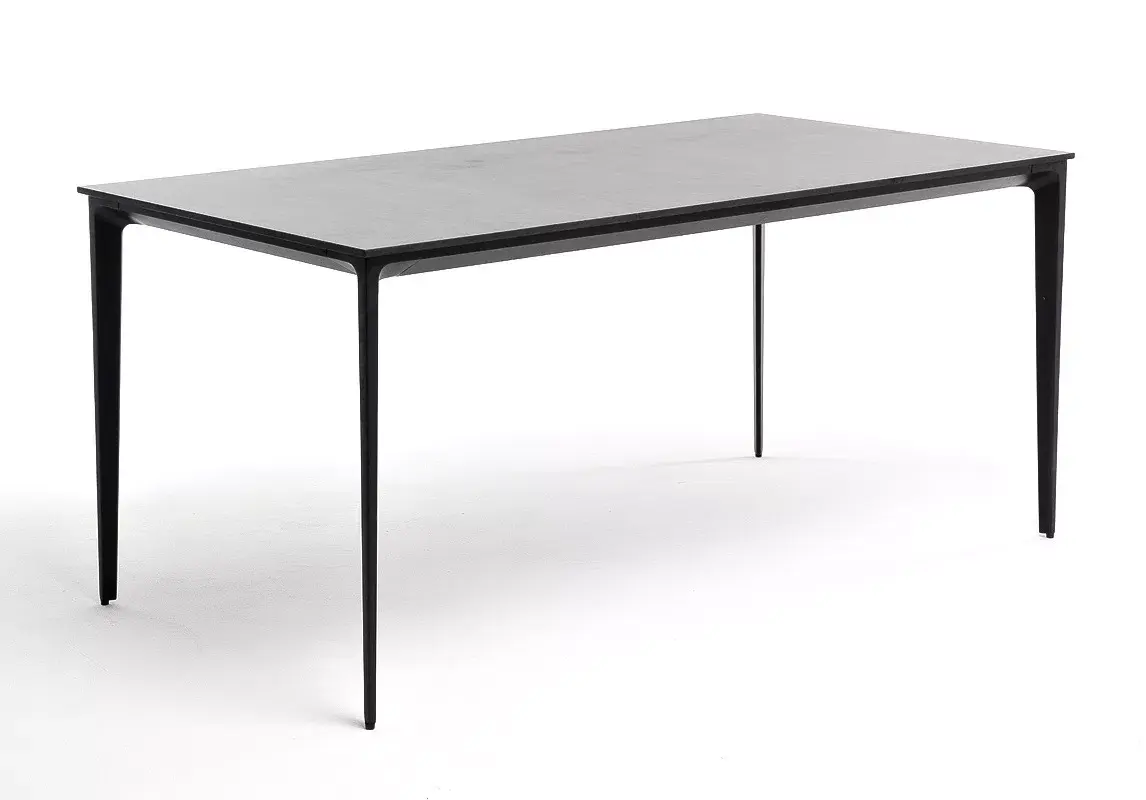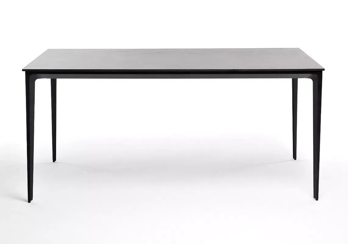 Столешница выполнена из современного высококачественного монолитного компакт-пластик HPL, толщиной 12 мм в цвете «серый гранит». Материал устойчив к высоким температурам, попаданию влаги и может использоваться при любых погодных условиях. Подстолье изготовлено из крашеного алюминия черного цвета.