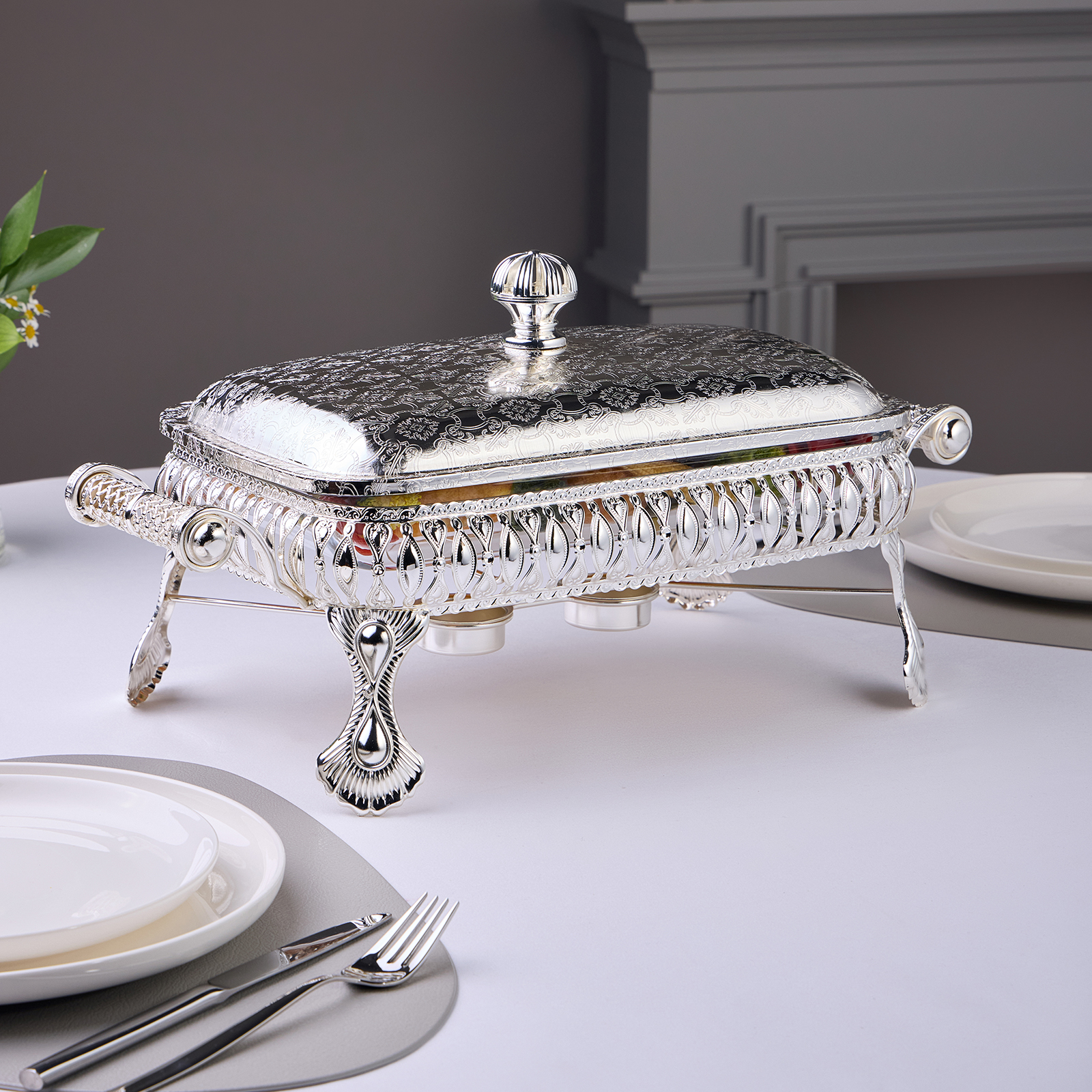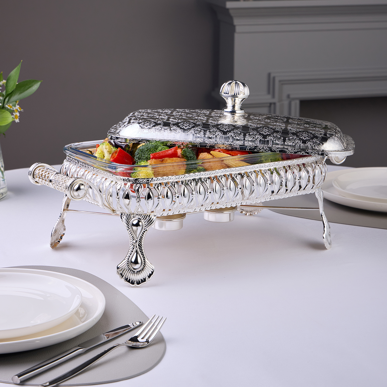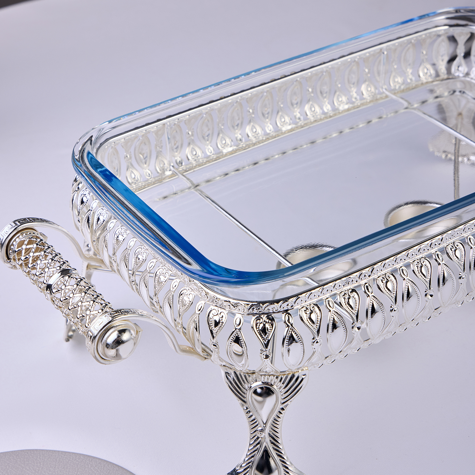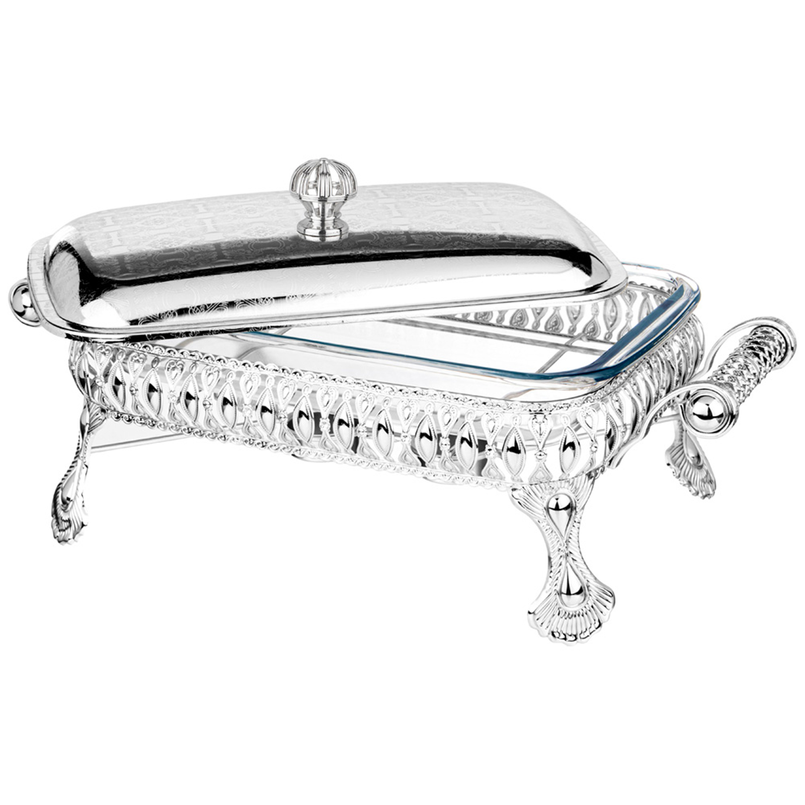 Стеклянную жаропрочную емкость можно использовать для запекания в духовом шкафу (максимальная температура нагрева до 400 С). Стеклянную емкость можно мыть в посудомоечнйо машине, хромированная подставка и крышка не подходят для мытья в посудомоечной машине.