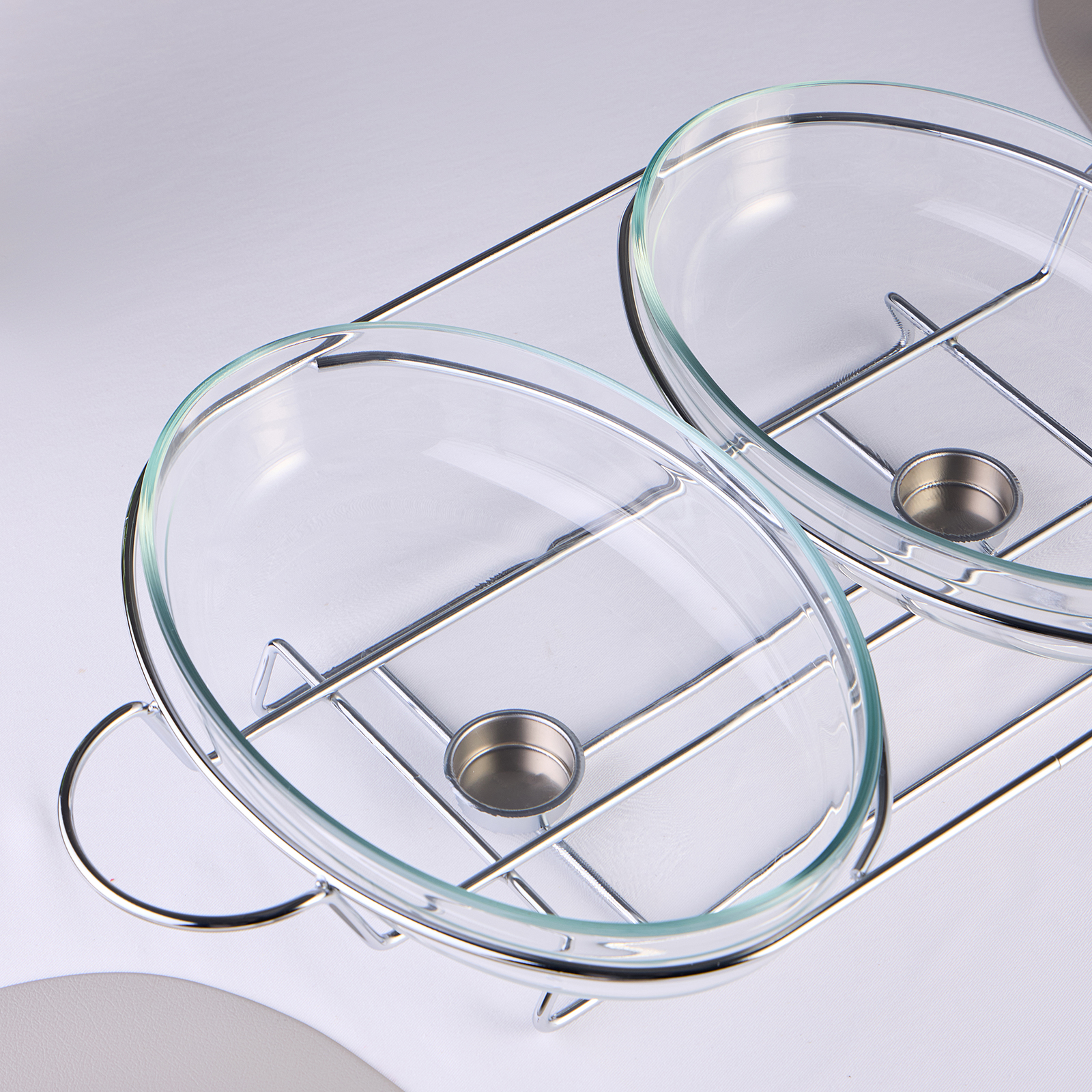 Стеклянную жаропрочную емкость можно использовать для запекания в духовом шкафу (максимальная температура нагрева до 400 С). Стеклянную емкость и крышку можно мыть в посудомоечнйо машине, хромированная подставка не подходит для мытья в посудомоечной машине.