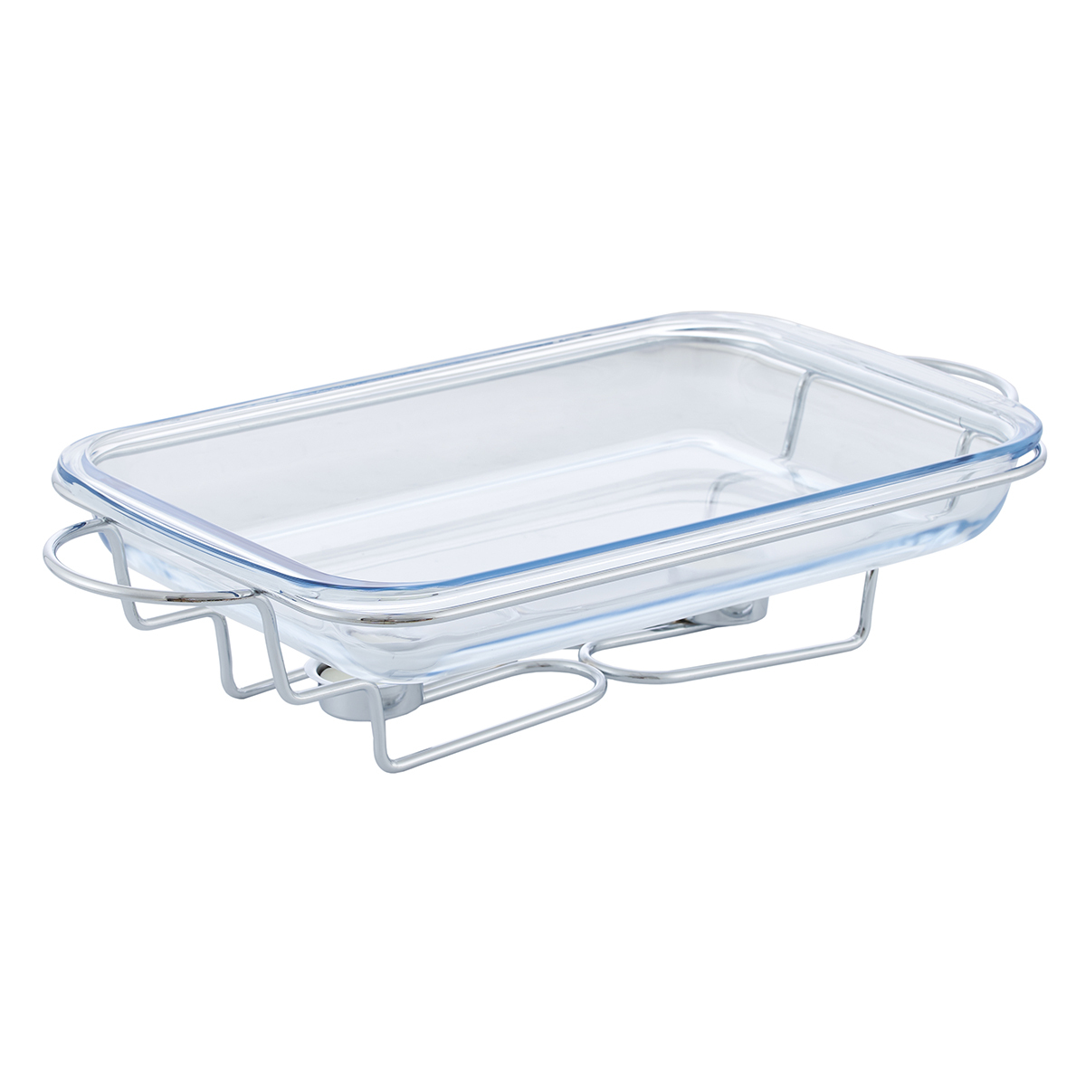 Прямоугольный стеклянный контейнер объемом 3 литра с металлической крышкой с зеркальной полировкой.