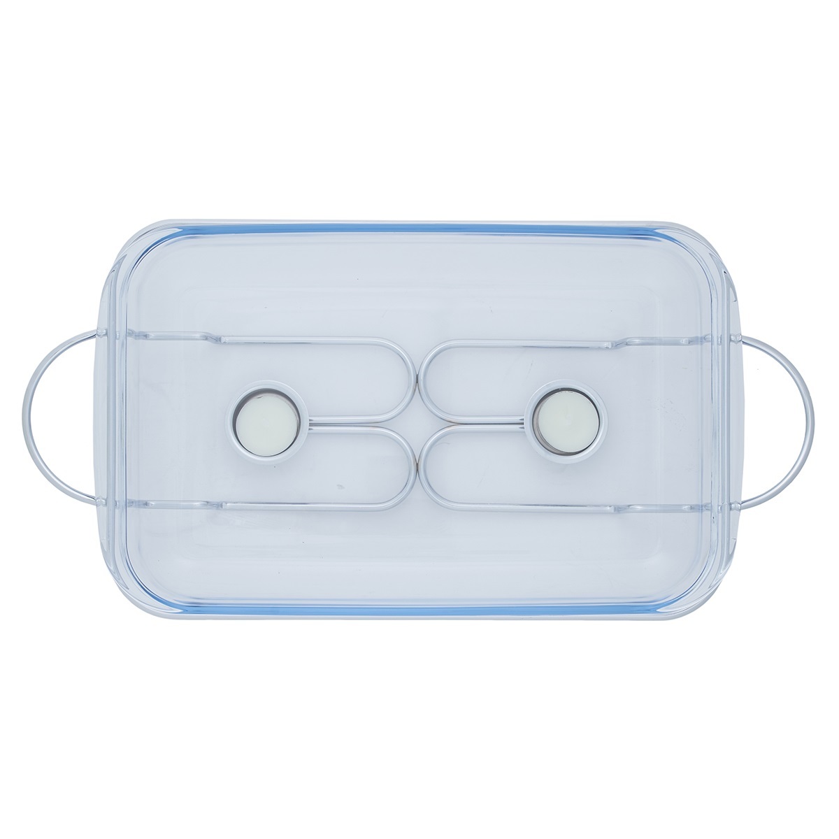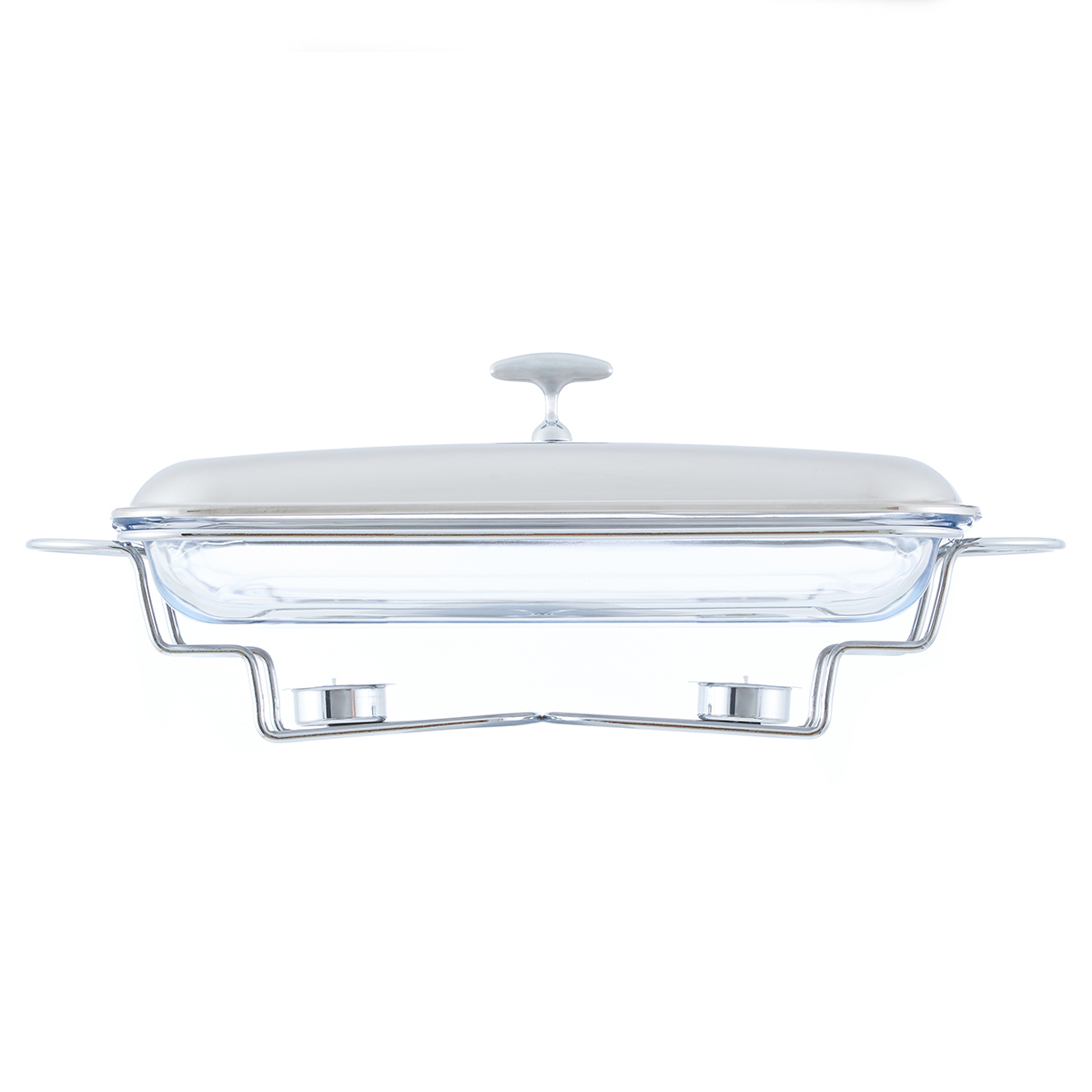 Мармит со стеклянным контейнером и двумя держателями для свечей.