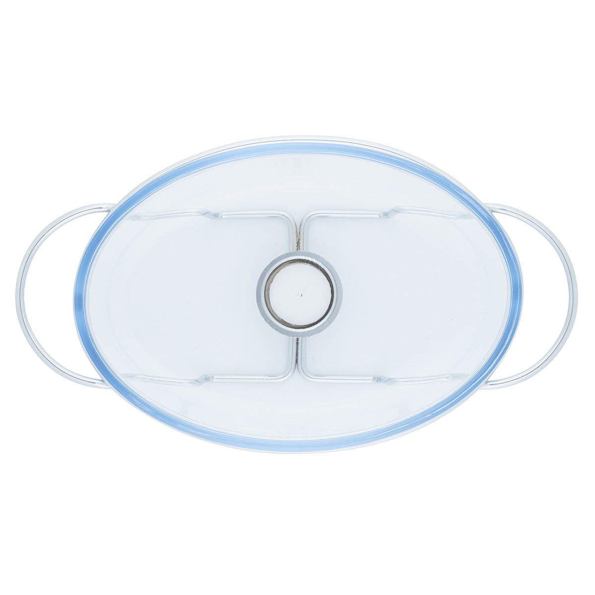 Мармит овальный Gipfel Marjorie 5026. Размер 25,8x17,8x6 см. Стеклянный контейнер вмещает 1,6 л продукта. Каркас оборудован двумя держателями для свечей. Контейнер из термостойкого стекла можно использовать в духовом шкафу, в микроволновой печи, мыть в посудомоечной машине. Каркас сделан из цинкового сплава и нержавеющей стали. Упакован в фирменную коробку Gipfel.