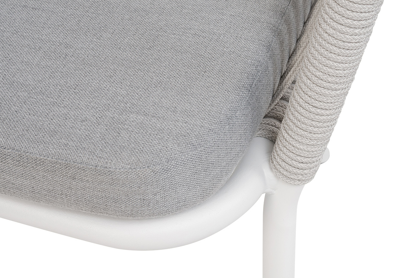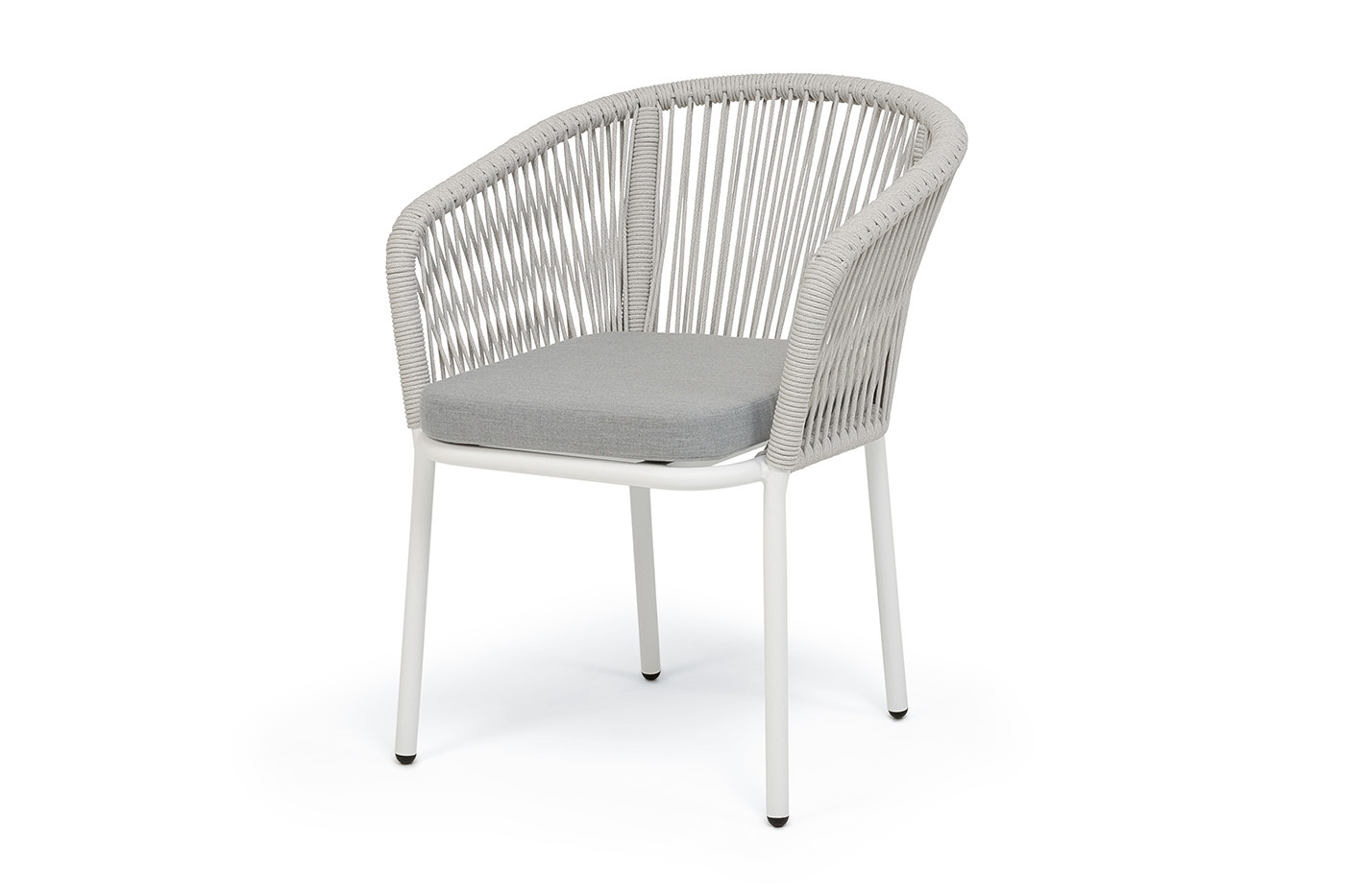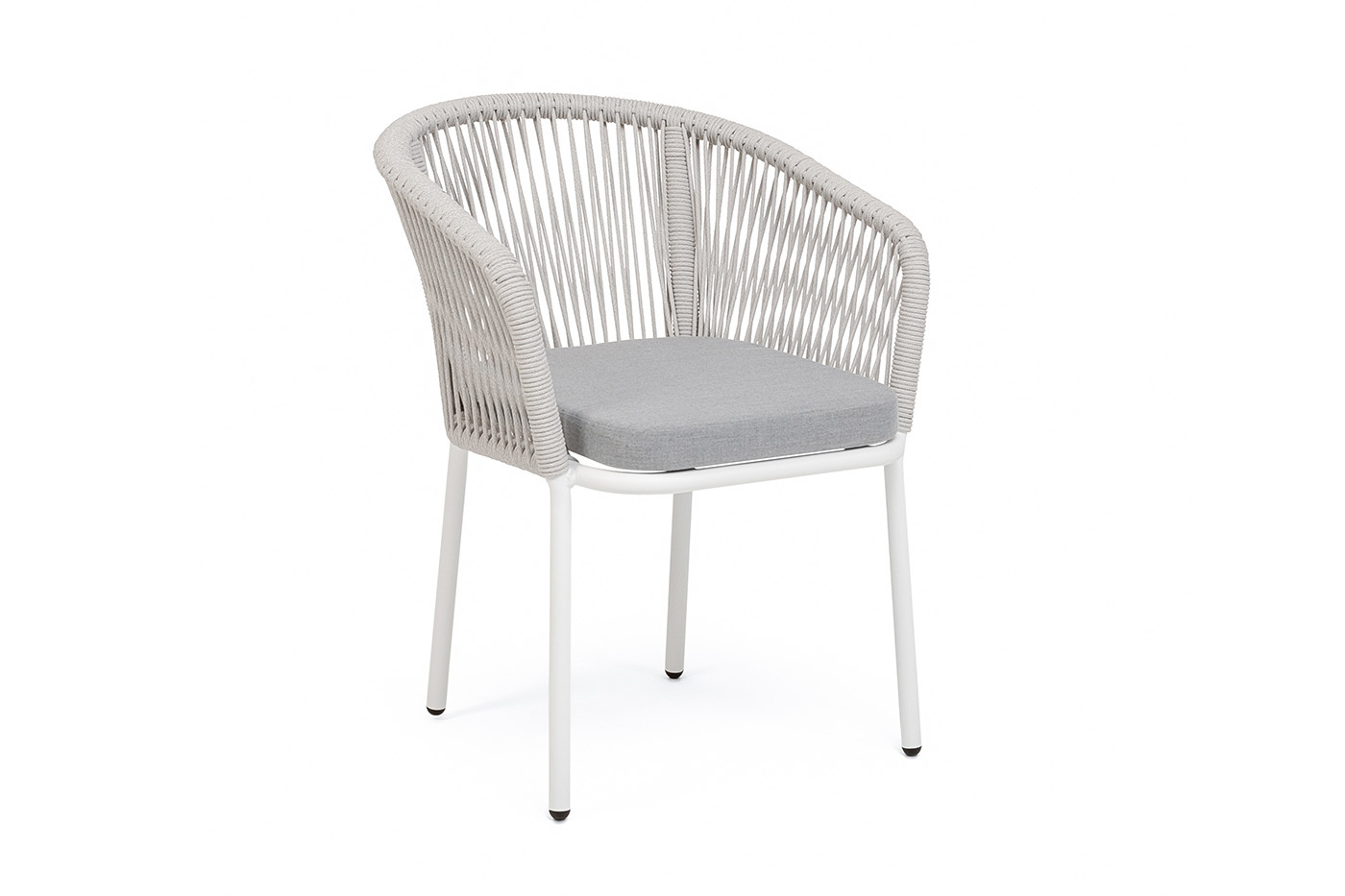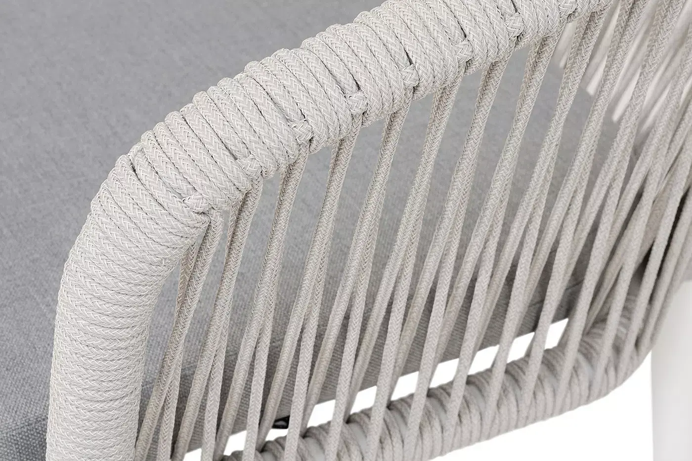 Выполнен из алюминиевого каркаса, окрашенного в белый цвет. Оплетка - современный материал «роуп», которым каркас оплетался вручную.