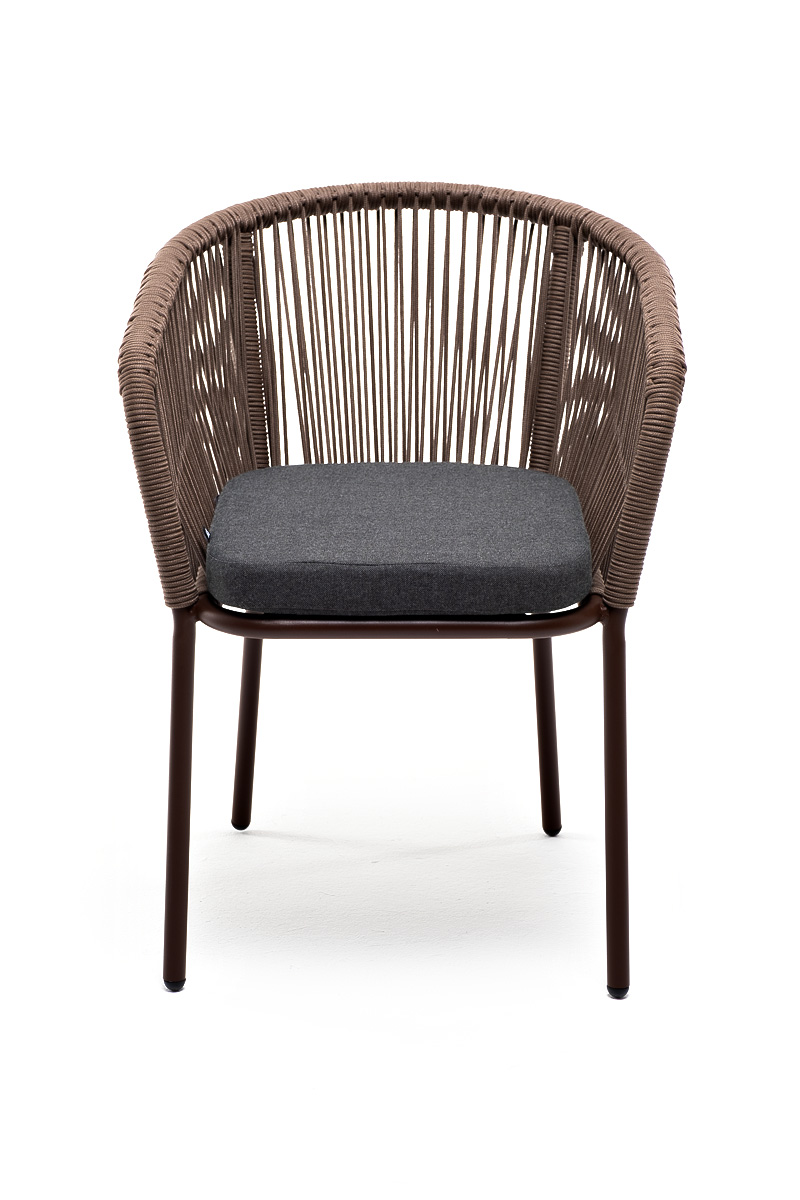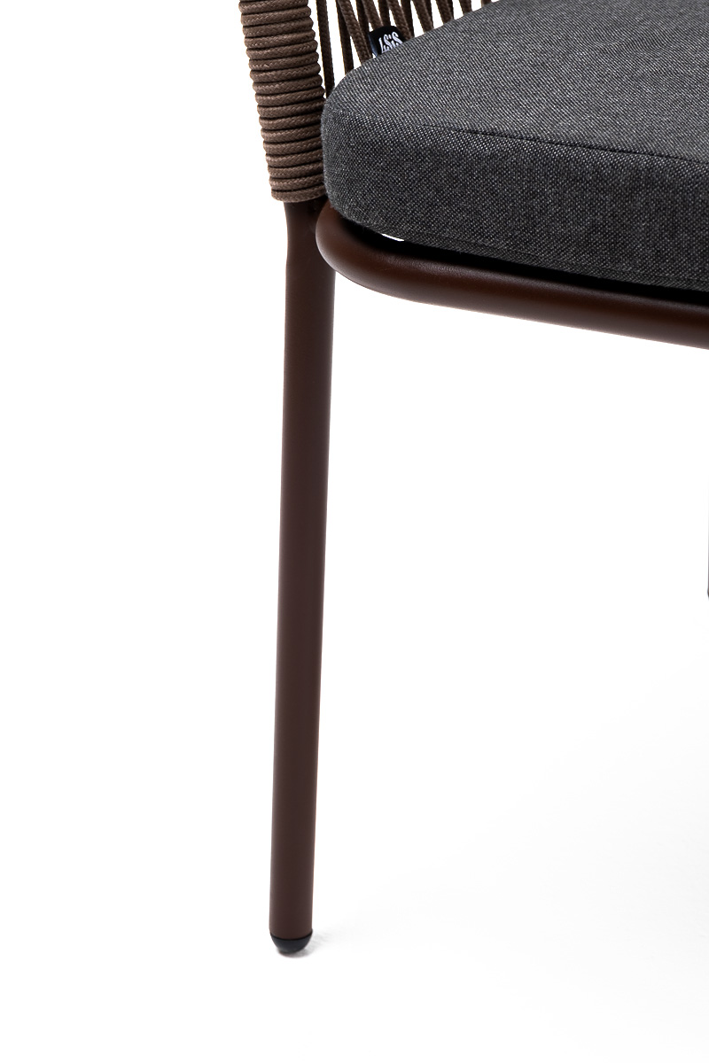 Выполнен из алюминиевого каркаса коричневого (RAL8016) цвета. Оплетка - современный материал "роуп", которым каркас оплетался вручную.