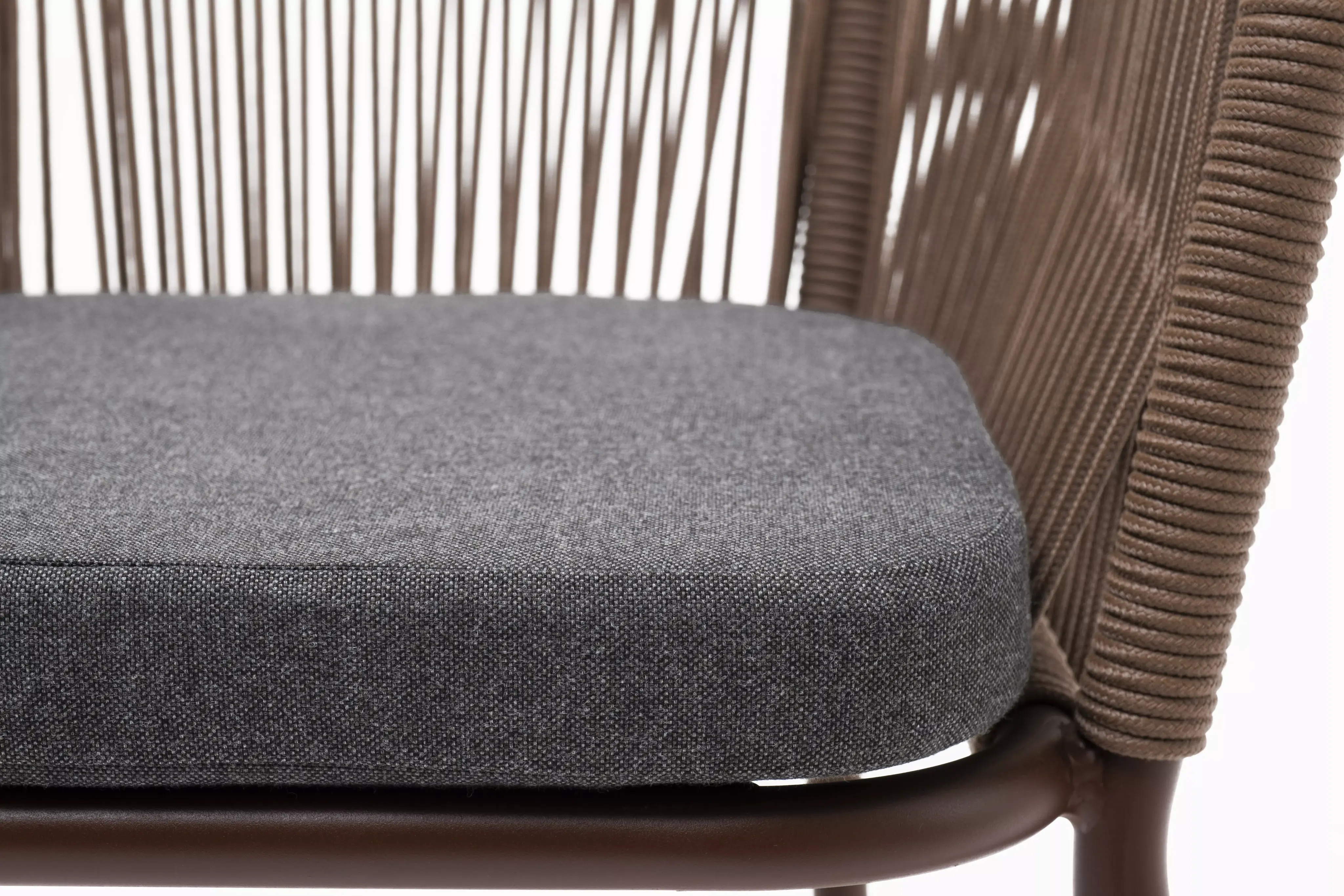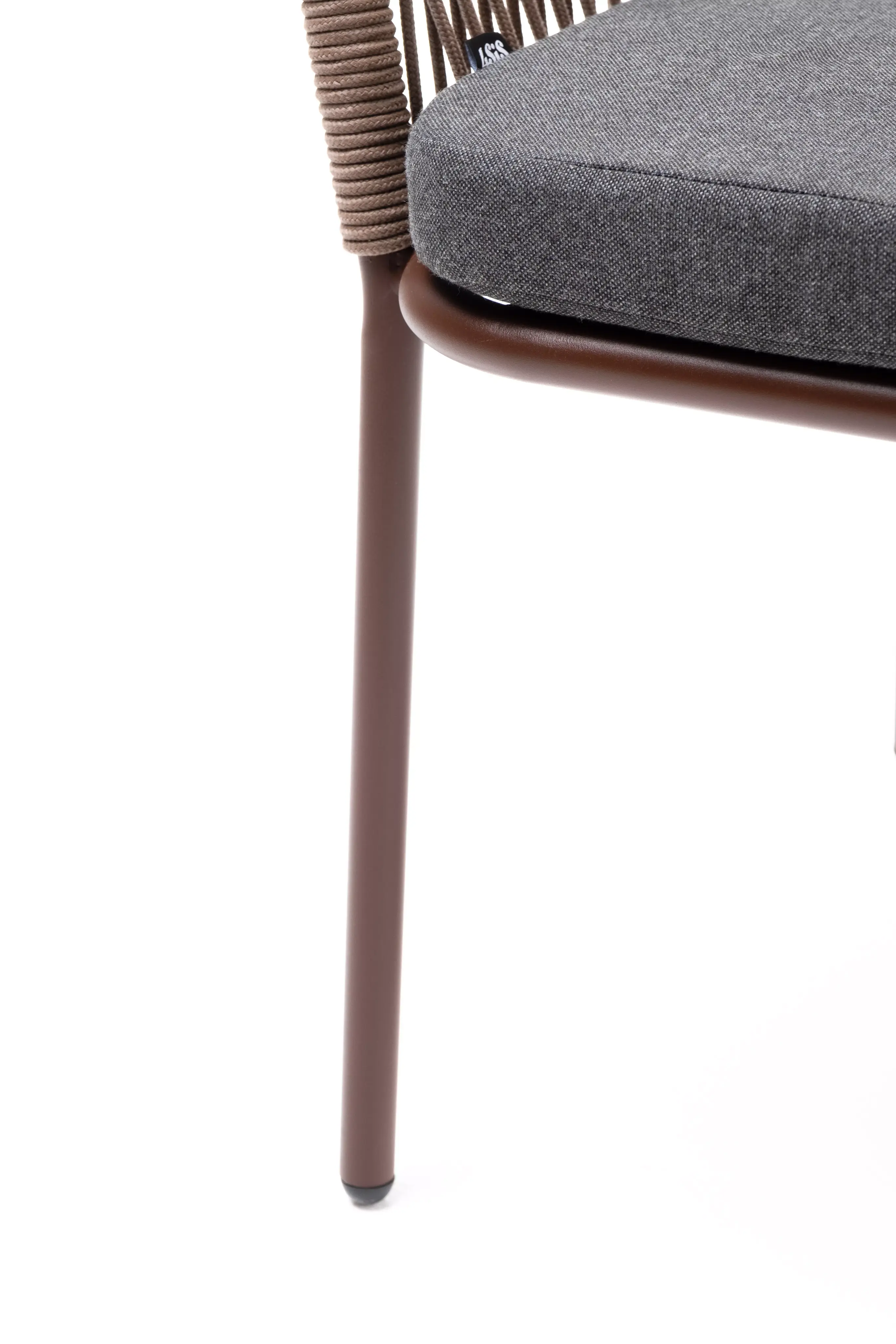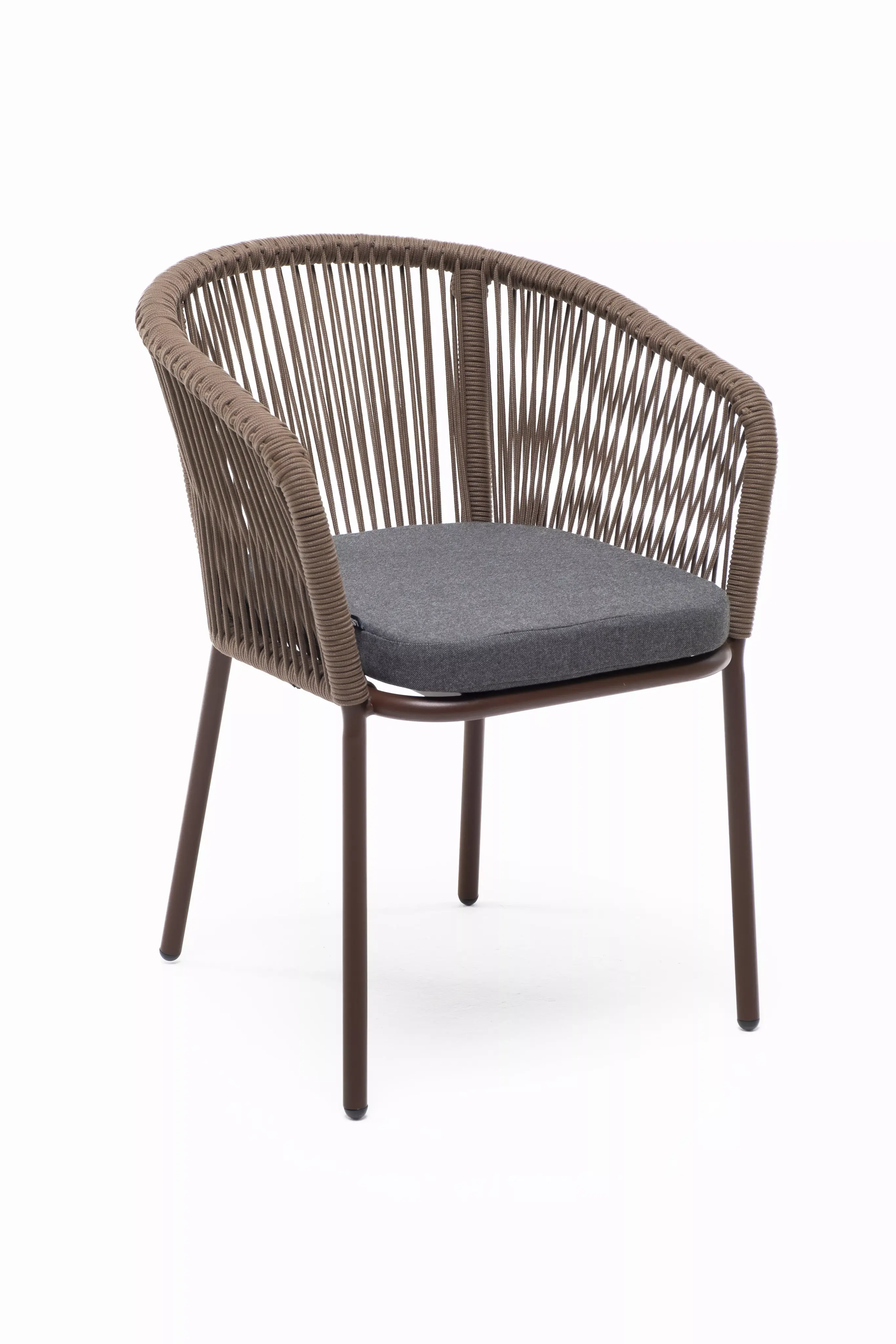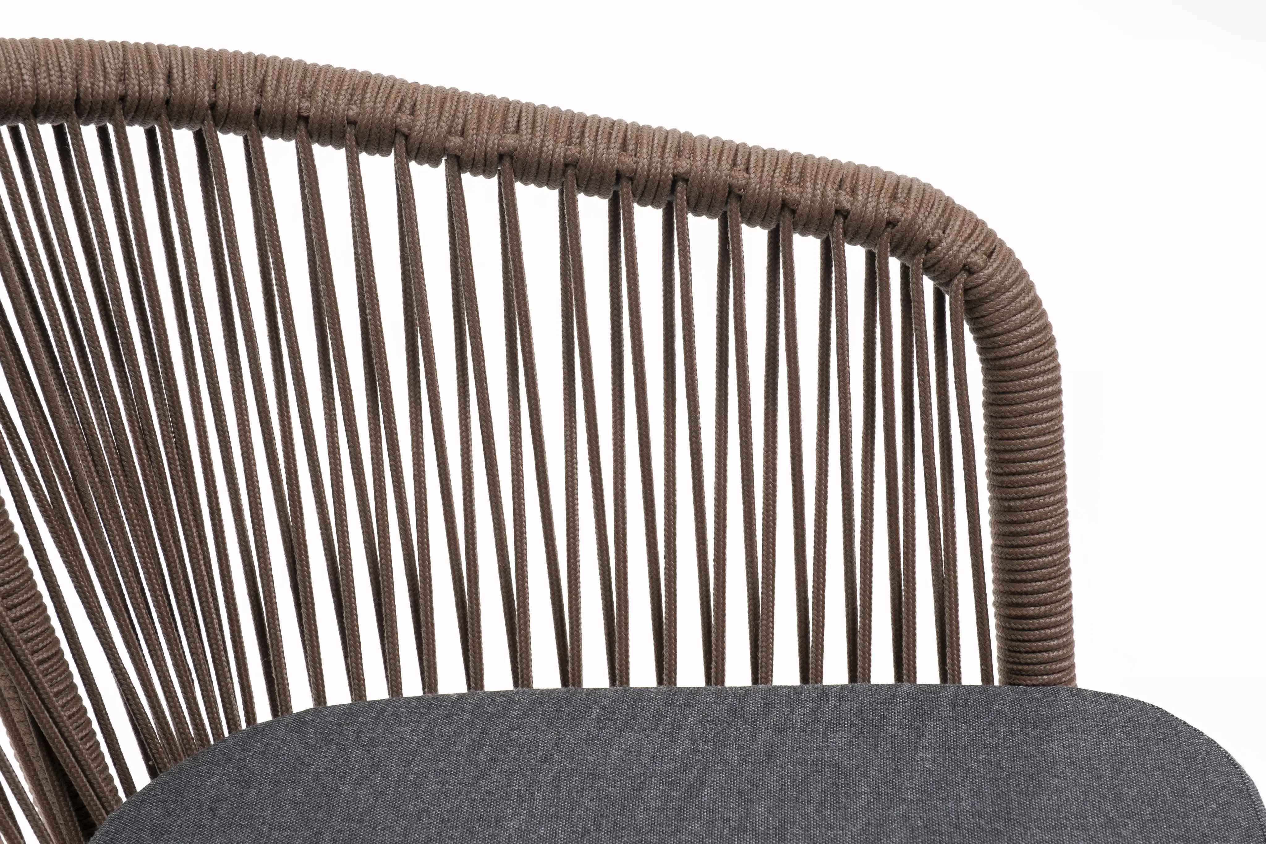 Выполнен из алюминиевого каркаса коричневого (RAL8016) цвета. Оплетка - современный материал «роуп», которым каркас оплетался вручную.