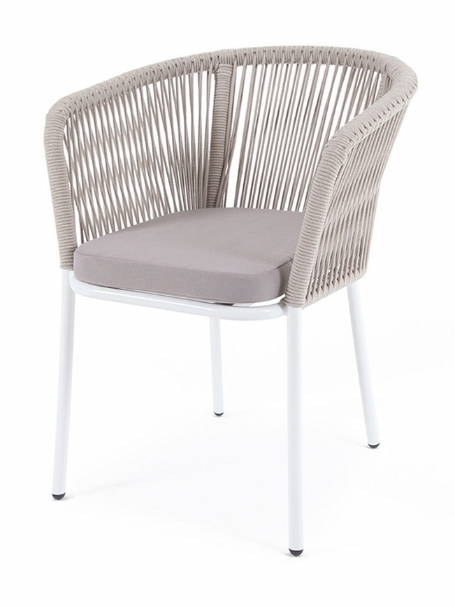 Выполнен из алюминиевого каркаса светло-серого (RAL7035) цвета. Оплетка - современный материал «роуп», которым каркас оплетался вручную.