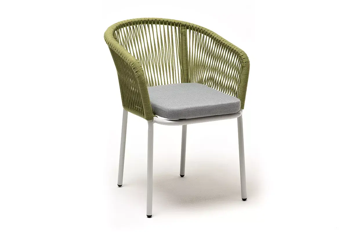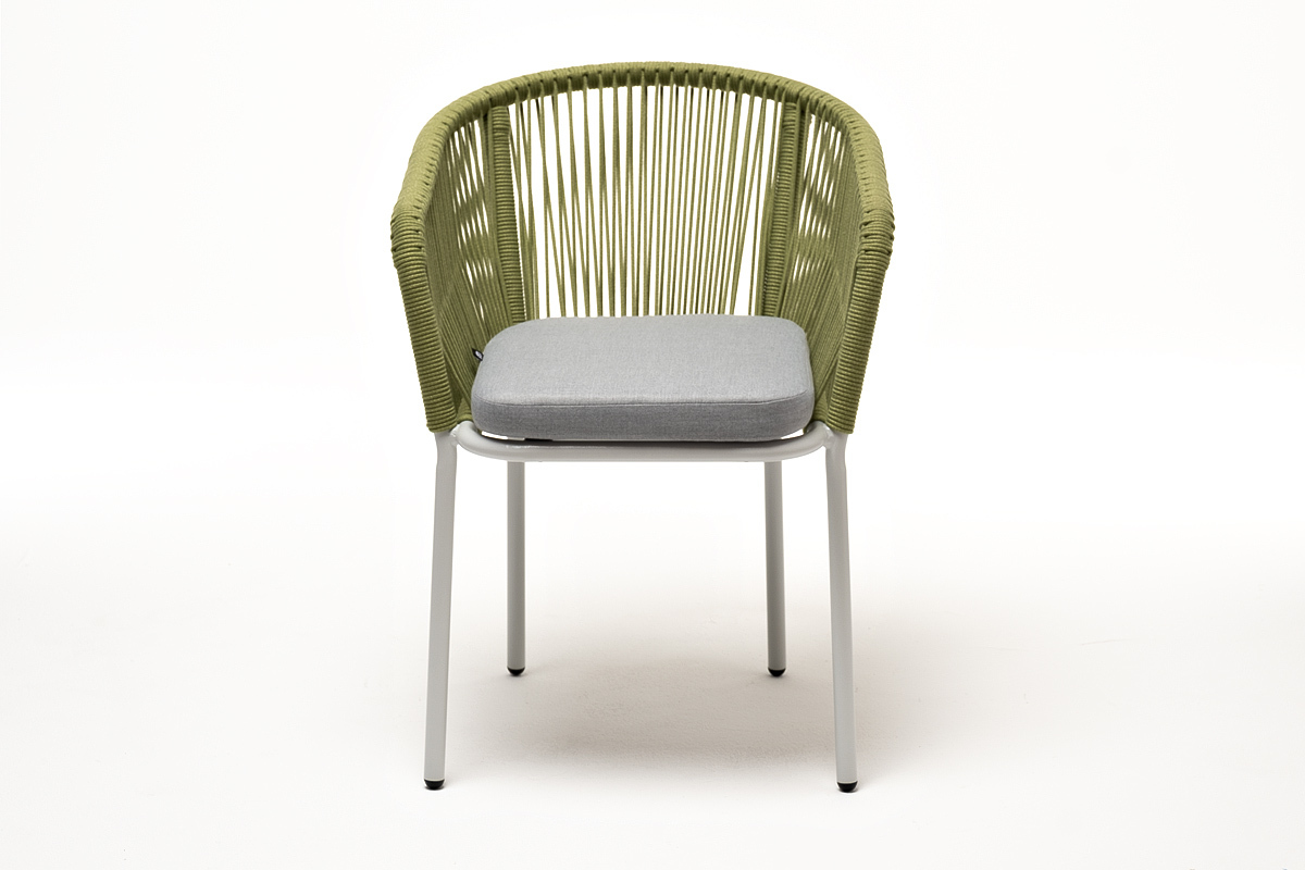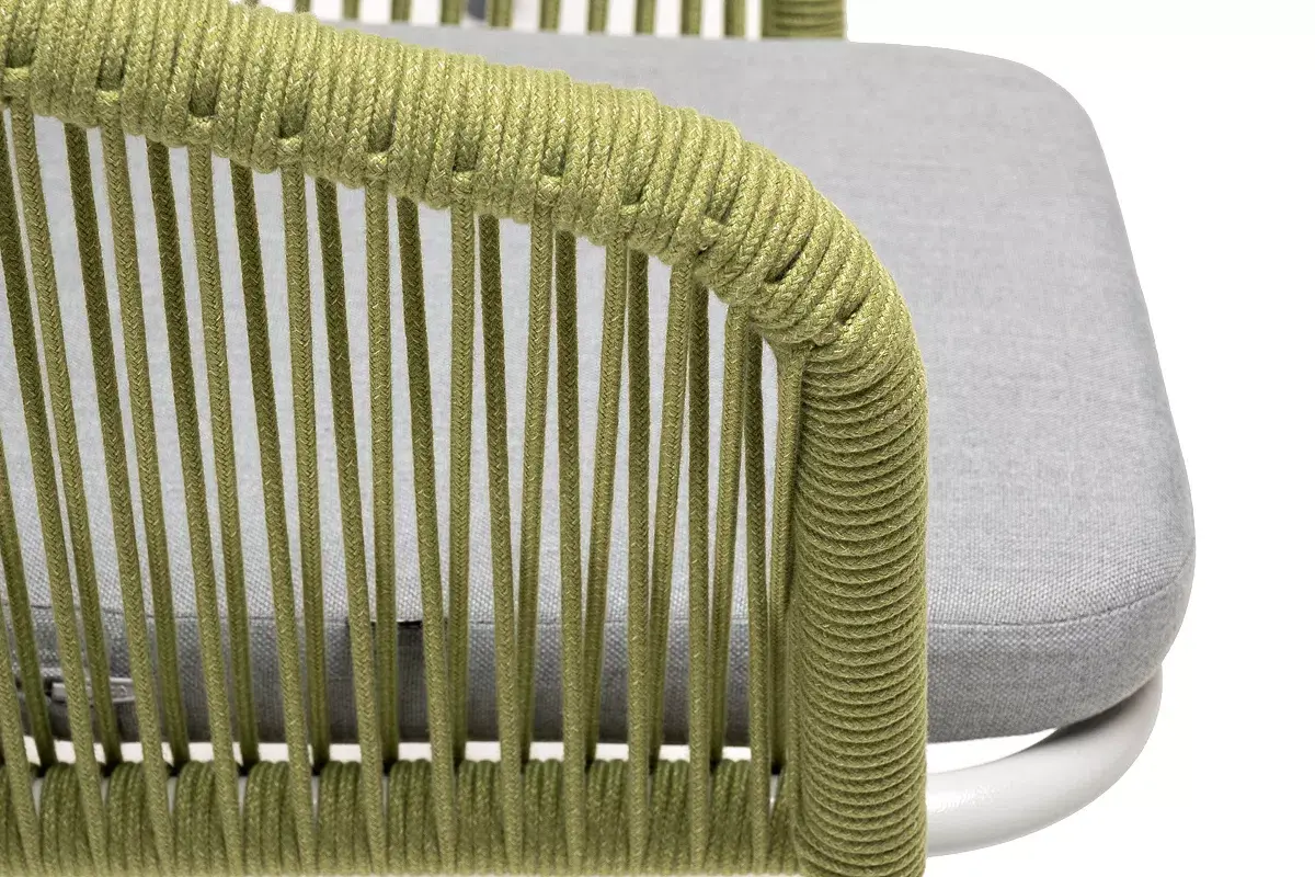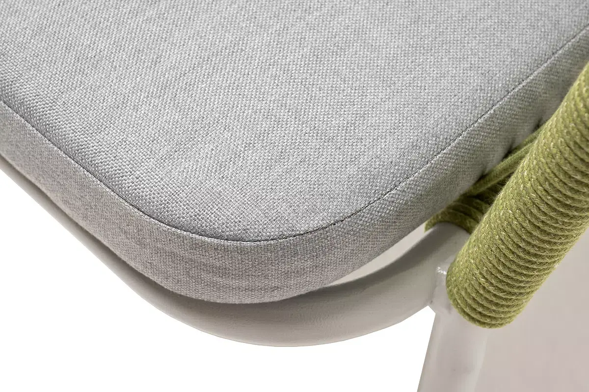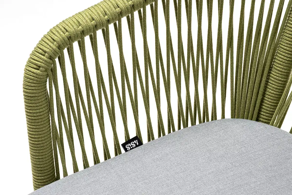 Выполнен из алюминиевого каркаса, окрашенного в светло-серый (RAL7035) цвет. Оплетка - современный материал «роуп», которым каркас оплетался вручную.