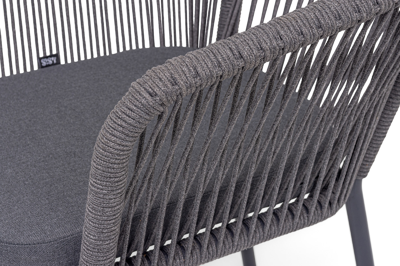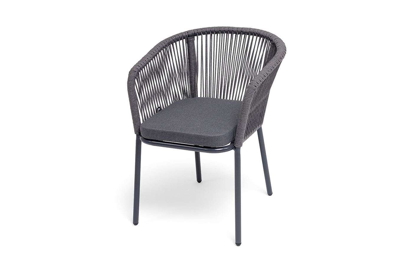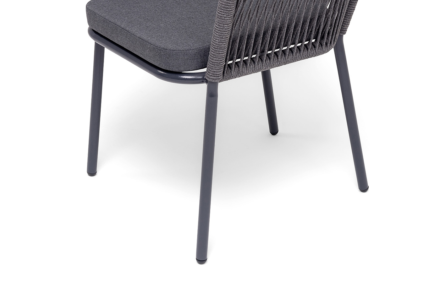 Выполнен из алюминиевого каркаса темно-серого (RAL7024) цвета. Оплетка - современный материал «роуп», которым каркас оплетался вручную.