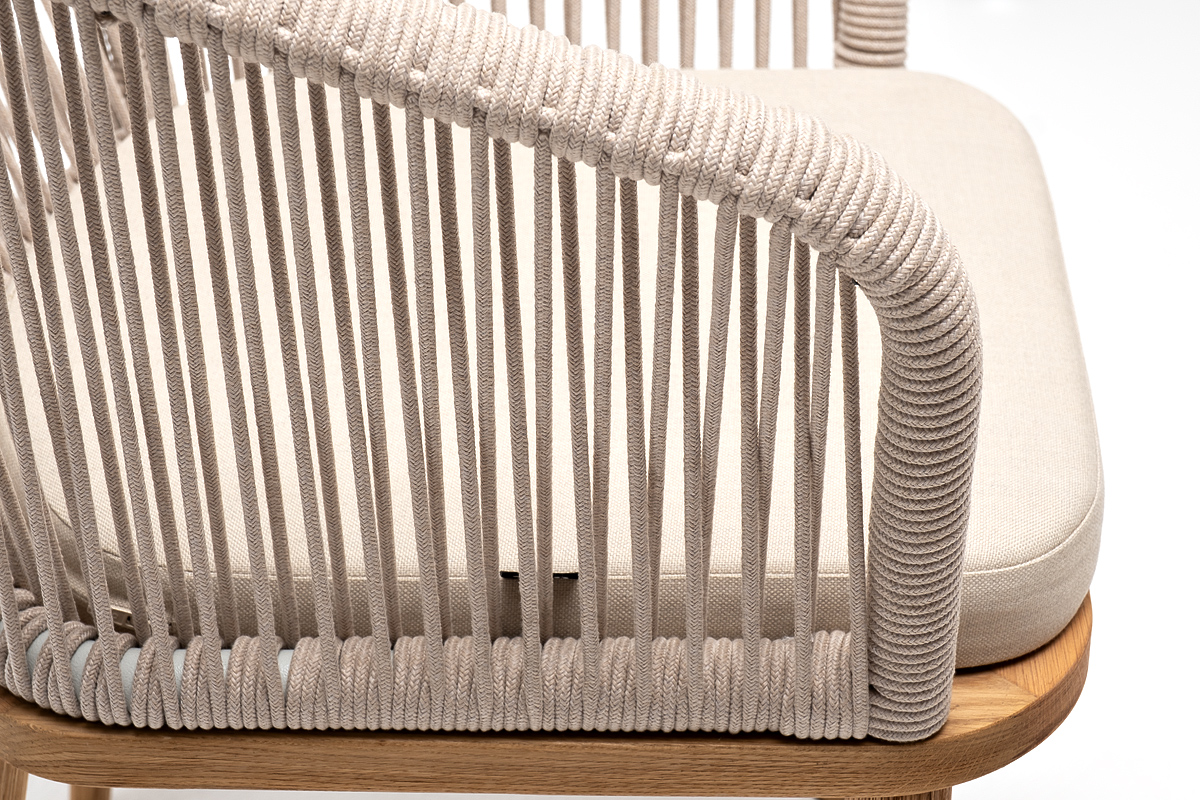 Каркас выполнен из натурального дерева. Оплетка - современный материал "роуп", которым каркас оплетался вручную.