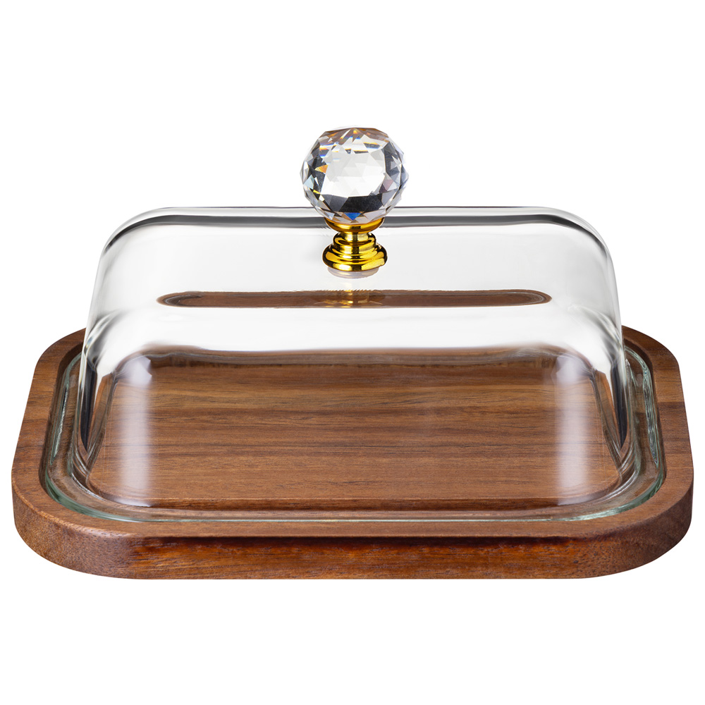 Прозрачная стеклянная крышка с аккуратной ручкой надежно защищает содержимое, сохраняя свежесть масла, оливок или специй, а также превращает блюдо в миниатюрную витрину для сыров, фруктов или закусок. Акация, известная своей прочностью и устойчивостью к влаге, делает изделие не только красивым, но и практичным — оно выдержит ежедневное использование без потери эстетики.