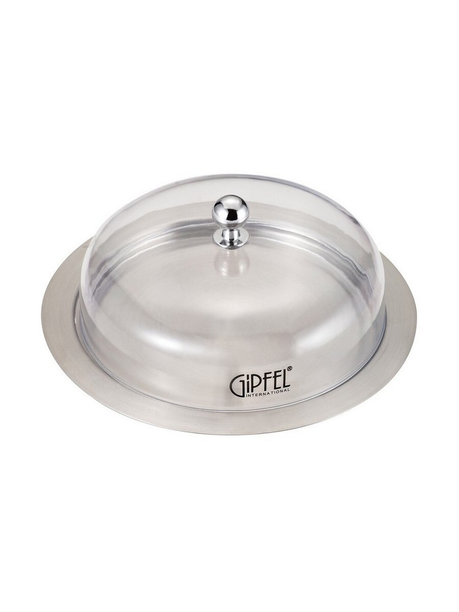 Масленка Gipfel 3905. Масленка изготовлена из нержавеющей стали и имеет прозрачную крышку. Размер 16х6,7 см. Упакована в фирменную коробку Gipfel.