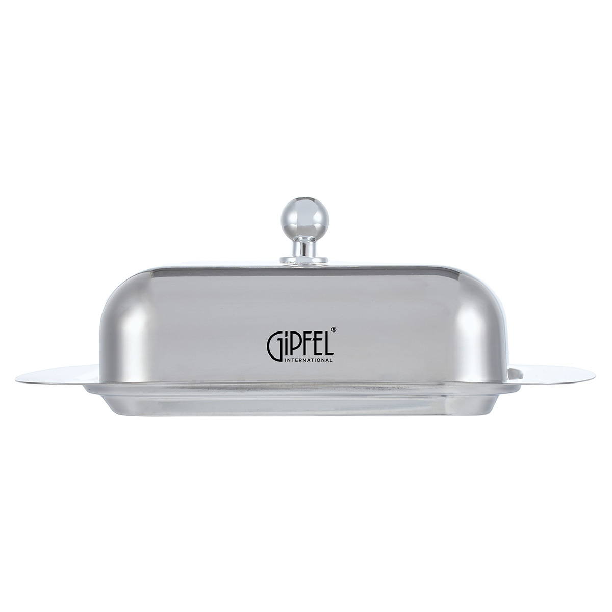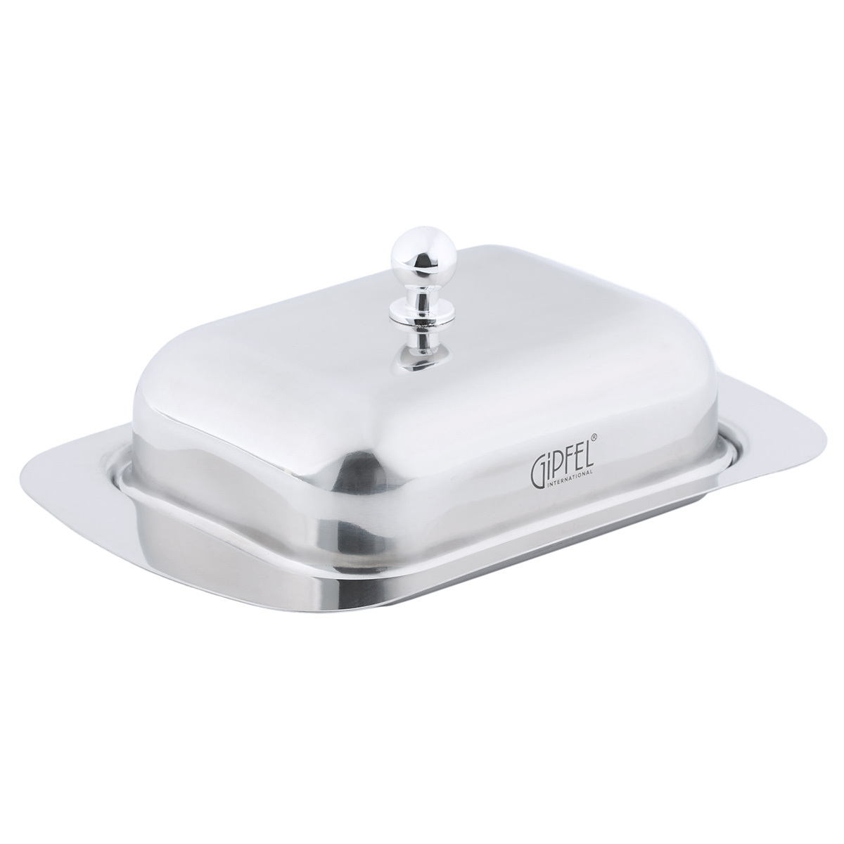 Масленка GIPFEL STERN 5522 размером 18x12x5см. Масленка и крышка выполнены из нержавеющей стали 18/10. Блеск сохраняется вне зависимости продолжительности эксплуатации, поэтому допускается использование ложек из металла. Крышка оснащена аккуратной ручкой. Объем масленки позволит разместить до 220 г масла. Созданная в классических традициях и дополненная логотипом бренда, масленка станет украшением стола. Упакована в фирменную коробку Gipfel.
