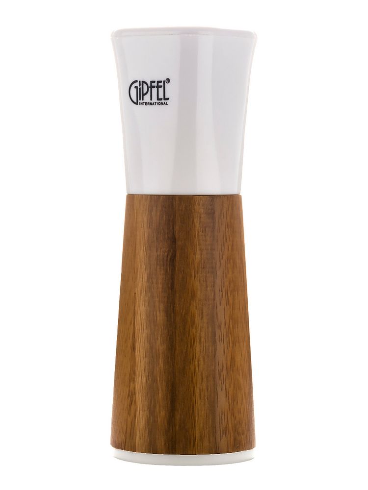 Мельница для специй Gipfel Tropica 9153. Ручная, высота 17 см. Цвет: белый. Материал: бамбук, керамика, пластик.