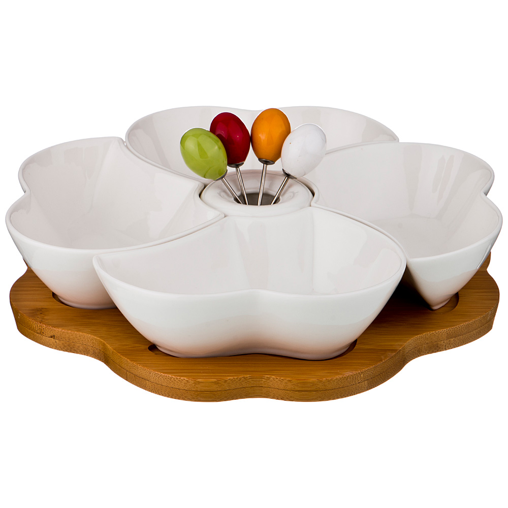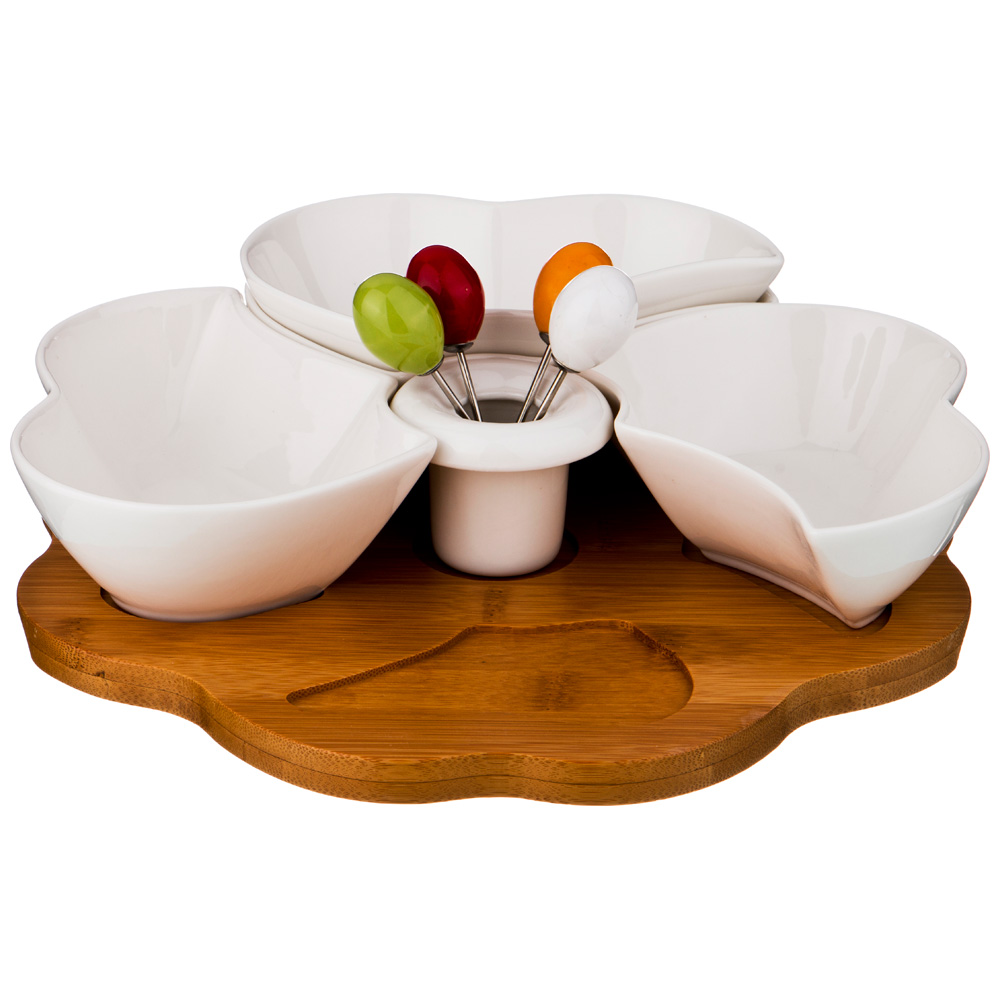 Рекомендации по использованию: Мыть с применением нейтральных моющих средств. Фарфор можно мыть в посудомоечной машине и использовать в микроволновой печи. Бамбуковые части запрещается мыть в посудомочной машине и использовать в микроволновых печах.