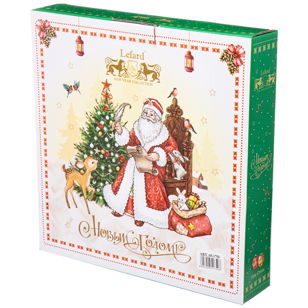 ТМ LEFARD New Year Collection готовы украсить праздничный новогодний стол и радовать всех в самые ожидаемые дни в году. С 1699 года указам Петра Первого Новый год празднуется в ночь на 1 января каждого года (по юлианскому календарю). Символом праздника стал дедушка с белой бородой, имя которого - Дед Мороз, и его помощница - девочка из снега по имени Снегурочка. Изделия с любимыми персонажами и нарядной новогодней Елкой выполнены на тонкостенном высококачественном фарфоре. Посуда упакована в яркие коробки. Это прекрасный подарок. Продукция прошла сертификацию, безопасна для контакта с пищевыми продуктами. Можно использовать в СВЧ, не рекомендуется мыть в посудомоечных машинах во избежание повреждения золотой отводки (деколи) на изделиях.