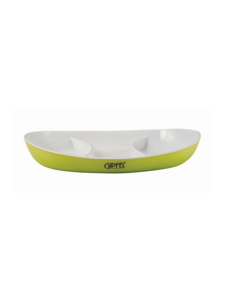 Менажница Gipfel 9410. Размер 28х17х3,5 см. Менажница серии Lumino – образцовое решение для модной сервировки стола. У нее три отделения, что позволит сервировать в одной лодочке различные закуски. Изделие, произведенное из прочного и износостойкого полипрогпилена, выполнено в двух цветах. Внутри белого цвета, снаружи – зеленого. Менажница имеет двойные стенки, что повышает ее прочность и износостойкость.