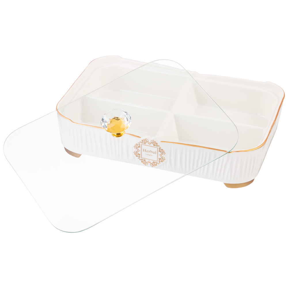 Коллекция "Herbal" ТМ LEFARD – это настоящая находка для хозяйки. Удивить гостей и домашних совсем непросто и поэтому дизайнеры торговой марки обращают внимание на способы подачи блюд и организацию чаепитий. Мармиты прямоугольные и овальные, менажницы круглые и прямоугольные на 4 и 5 секций с пластиковыми крышками и без, креманки, салатники разных размеров, банки, чайники с металлическими ситами, чайные пары и кружки помогут в этом. Изделия выполнены из упрочненного фарфора с отделкой близкой по цвету золотой. Красивый рельеф напоминает стебли сочных трав и создает игру света благодаря блестящей глянцевой поверхности. Это хороший подарок. Стильная цветная упаковка. Посуда прошла сертификацию. Безопасна для контакта с пищевыми продуктами. Изделия не рекомендуется использовать в микроволновой печи, мыть в посудомоечной машине.