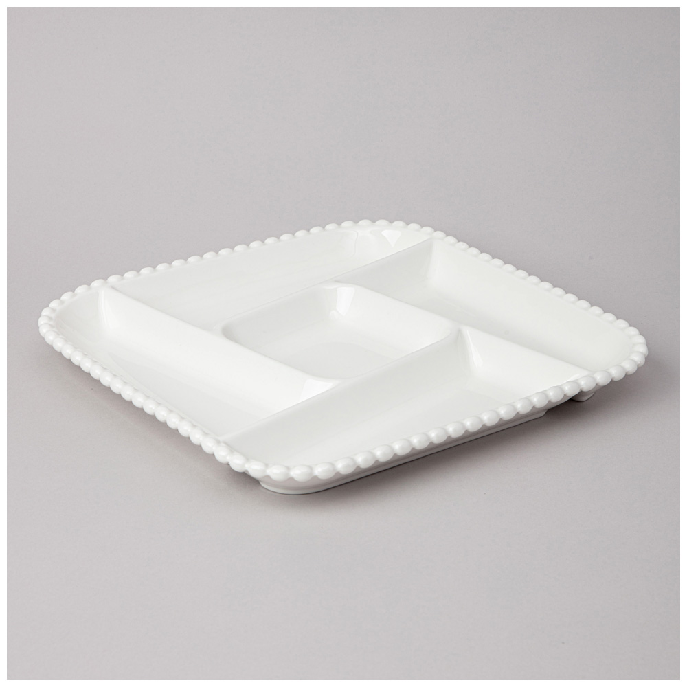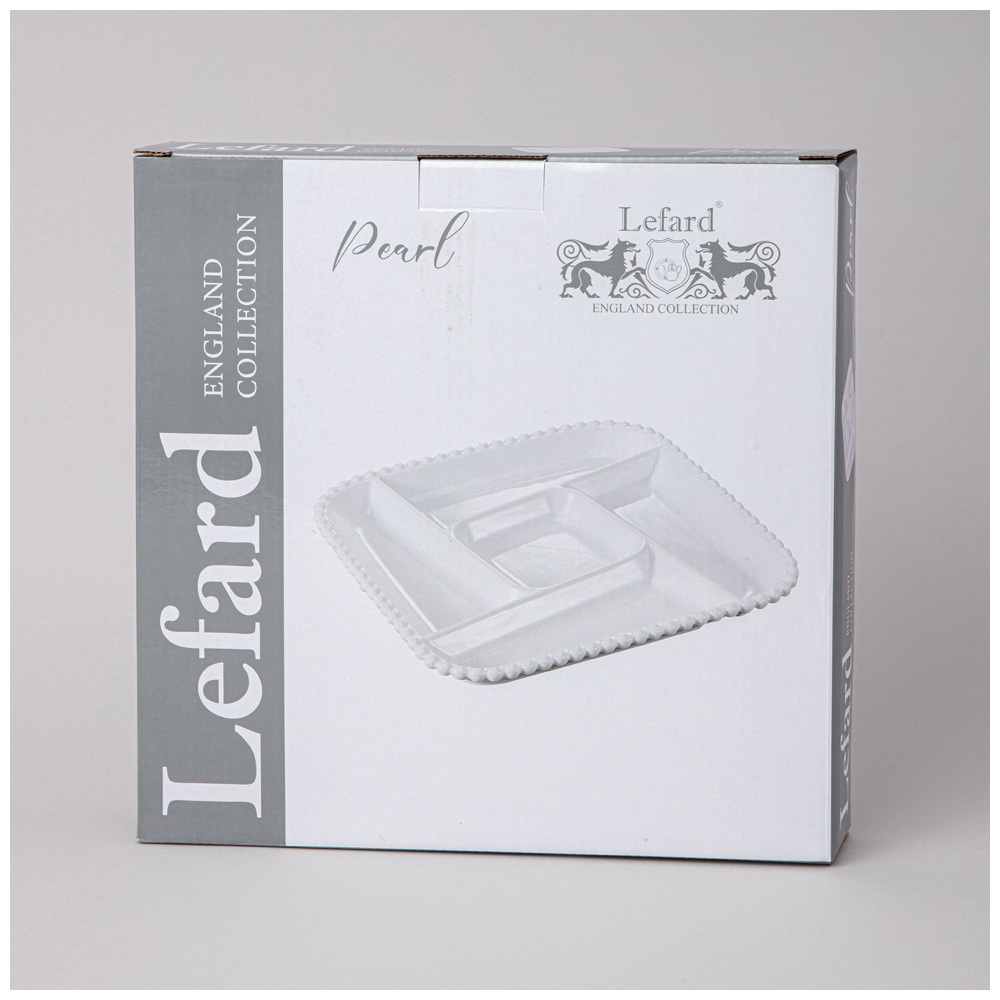 ТМ LEFARD коллекция "PEARL - ЖЕМЧУЖИНА" - трендовая, белоснежная, с оригинальным рельефом по краю в виде горошин, базовая для любой сервировки, выполнена из упрочненного фарфора. Менажница - это удобная ёмкость, которая экономит пространство на столе и делает сервировку эффектной и необычной. Главная задача сервировочной посуды – разгрузить стол и подать закуски красиво. На закусочном столе это холодные или горячие закуски, салаты, рыба, грибы; на чайном – конфеты, орешки, сладости.