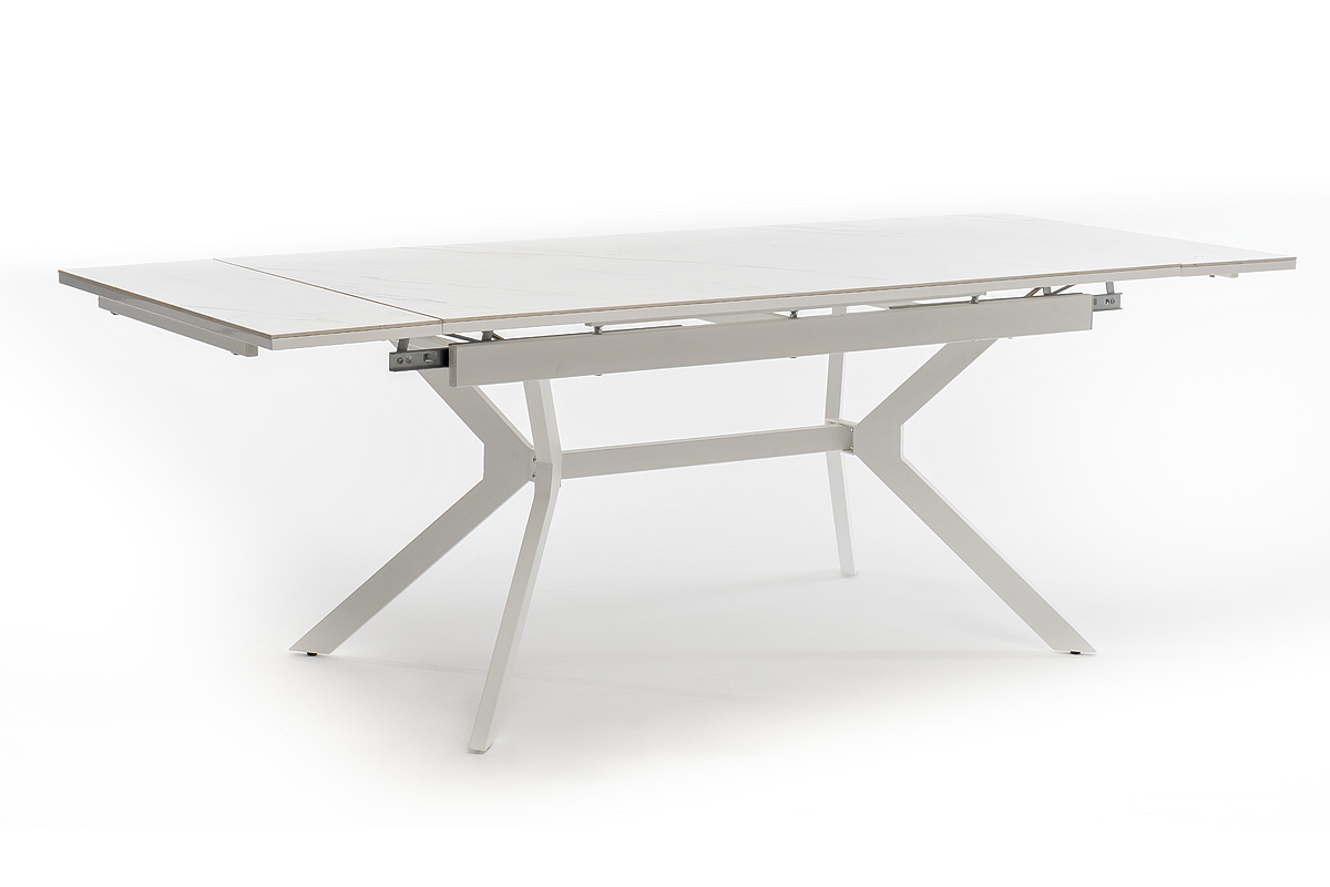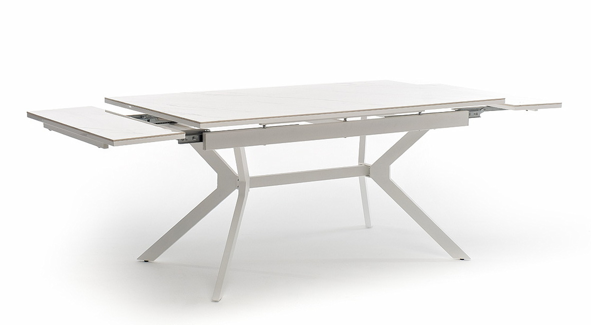 В сложенном виде его размеры составляют 160×90×76 см, однако при необходимости его легко можно удлинить до 220 см, благодаря двум интегрированным в столешнице механизмам, которые выдвигаются с обеих сторон.