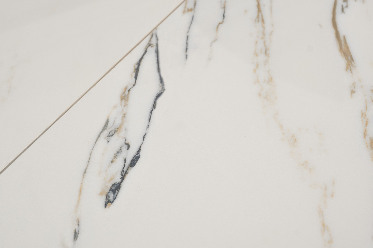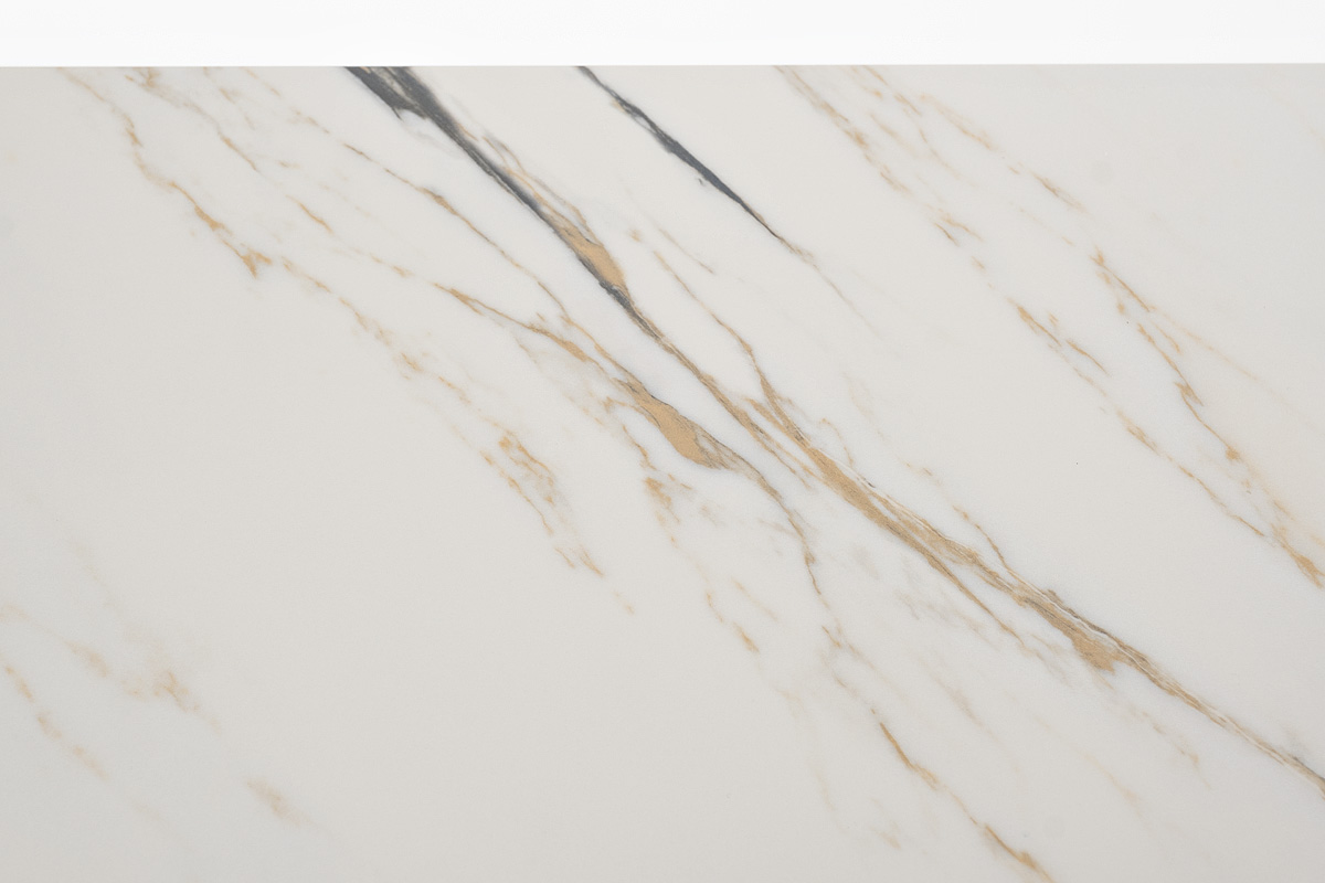 Столешница выполнена из качественного МДФ (18 мм), окрашена в белый матовый цвет и укреплена 6-мм глянцевой керамикой. Это гарантирует долгий срок службы и устойчивость к повреждениям.