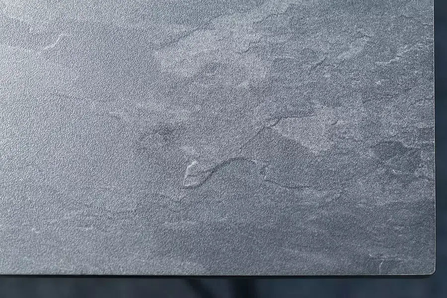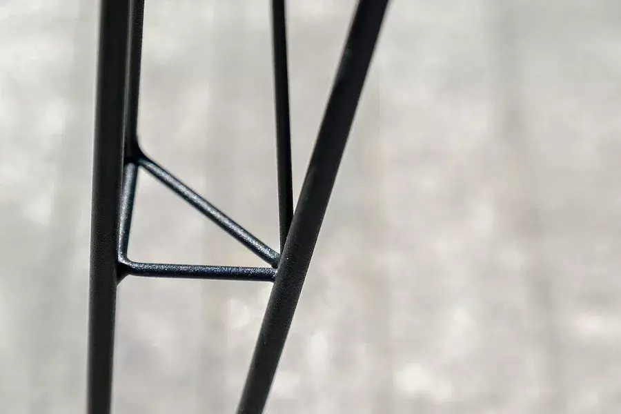 Столешница стола выполнена из высококачественного монолитного компакт-пластика HPL. Его толщина - 12 мм, цвет - «черный мрамор», ножки - из металла.