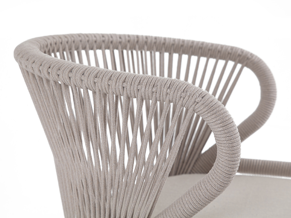 Изготовлен из алюминиевого каркаса, оплетенного вручную эластичными синтетическими лентами из высокопрочных полиэфирных волокон (роуп круглый). Цвет каркаса и оплетки - бежевый.