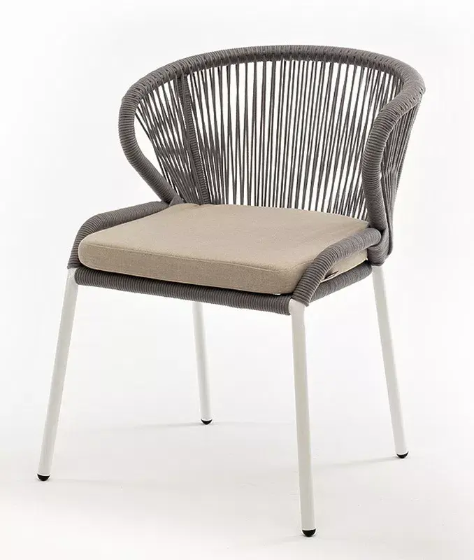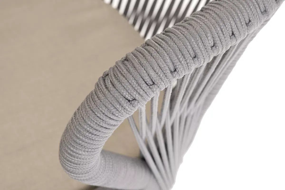 Изготовлен из алюминиевого каркаса, оплетенного вручную эластичными синтетическими лентами из высокопрочных полиэфирных волокон (роуп круглый). Цвет каркаса - белый, оплетки - светло-серый.
