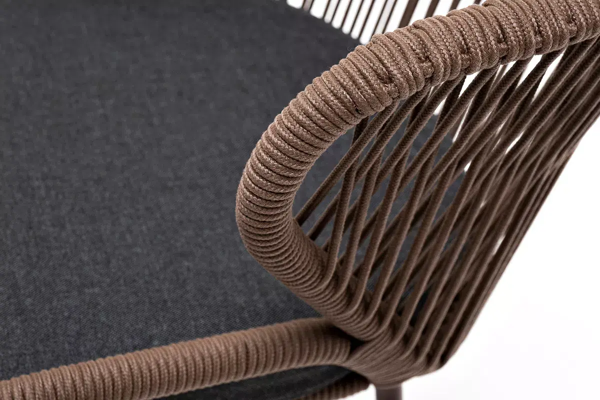 Изготовлен из алюминиевого каркаса, оплетенного вручную эластичными синтетическими лентами из высокопрочных полиэфирных волокон (роуп круглый). Цвет каркаса - коричневый (RAL8016), оплетки - коричневый.