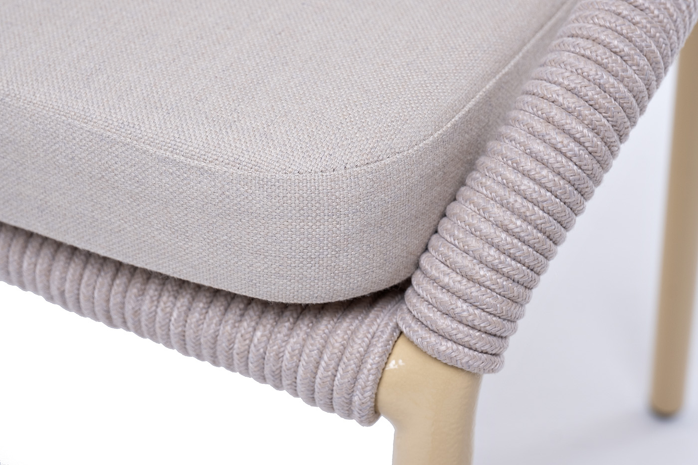 Изготовлен из алюминиевого каркаса, оплетенного вручную эластичными синтетическими лентами из высокопрочных полиэфирных волокон (роуп круглый). Цвет каркаса - бежевый (RAL1001), оплетки - бежевый.