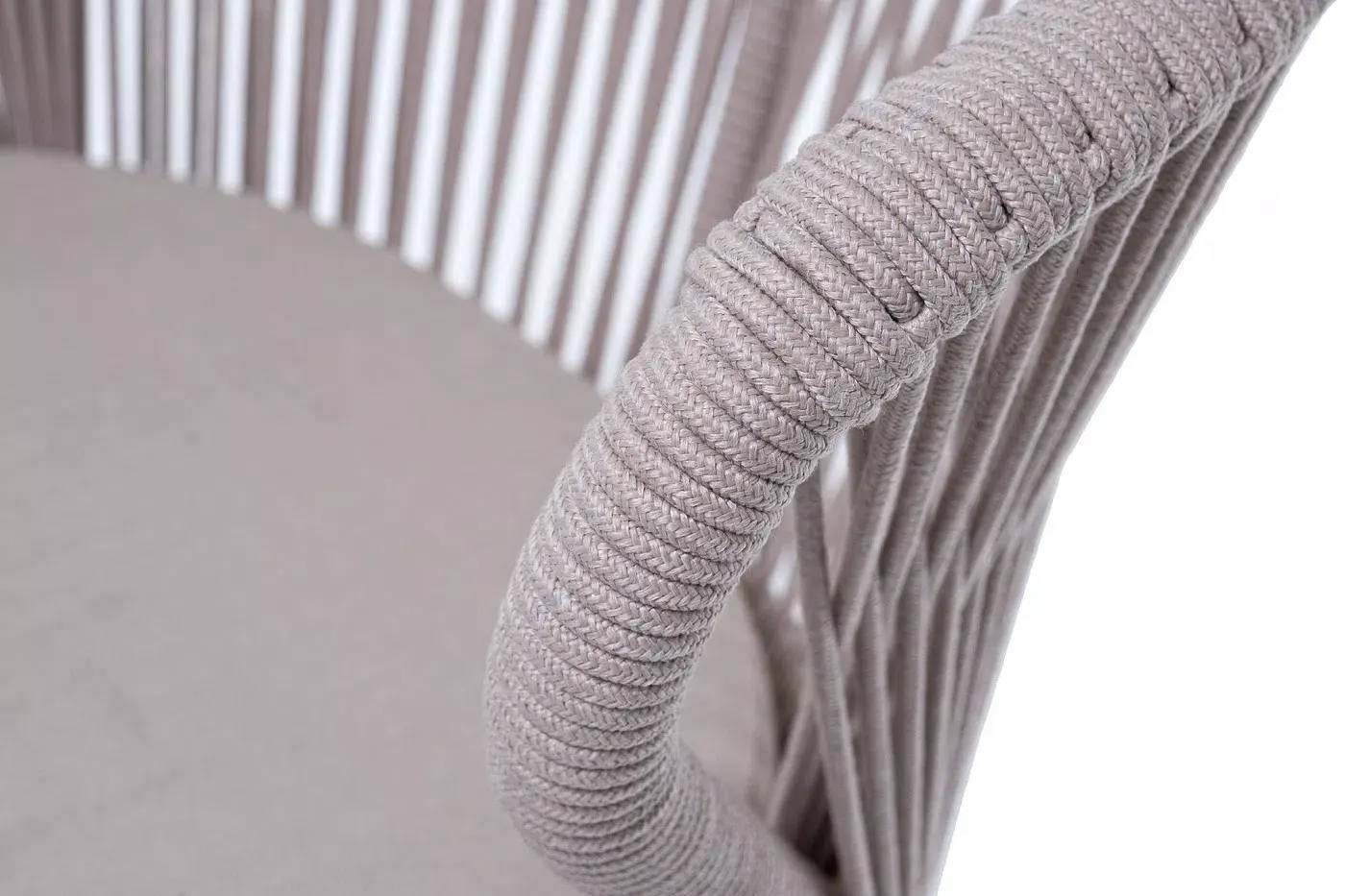Изготовлен из алюминиевого каркаса, оплетенного вручную эластичными синтетическими лентами из высокопрочных полиэфирных волокон (роуп круглый). Цвет каркаса - бежевый (RAL1001), оплетки - бежевый.