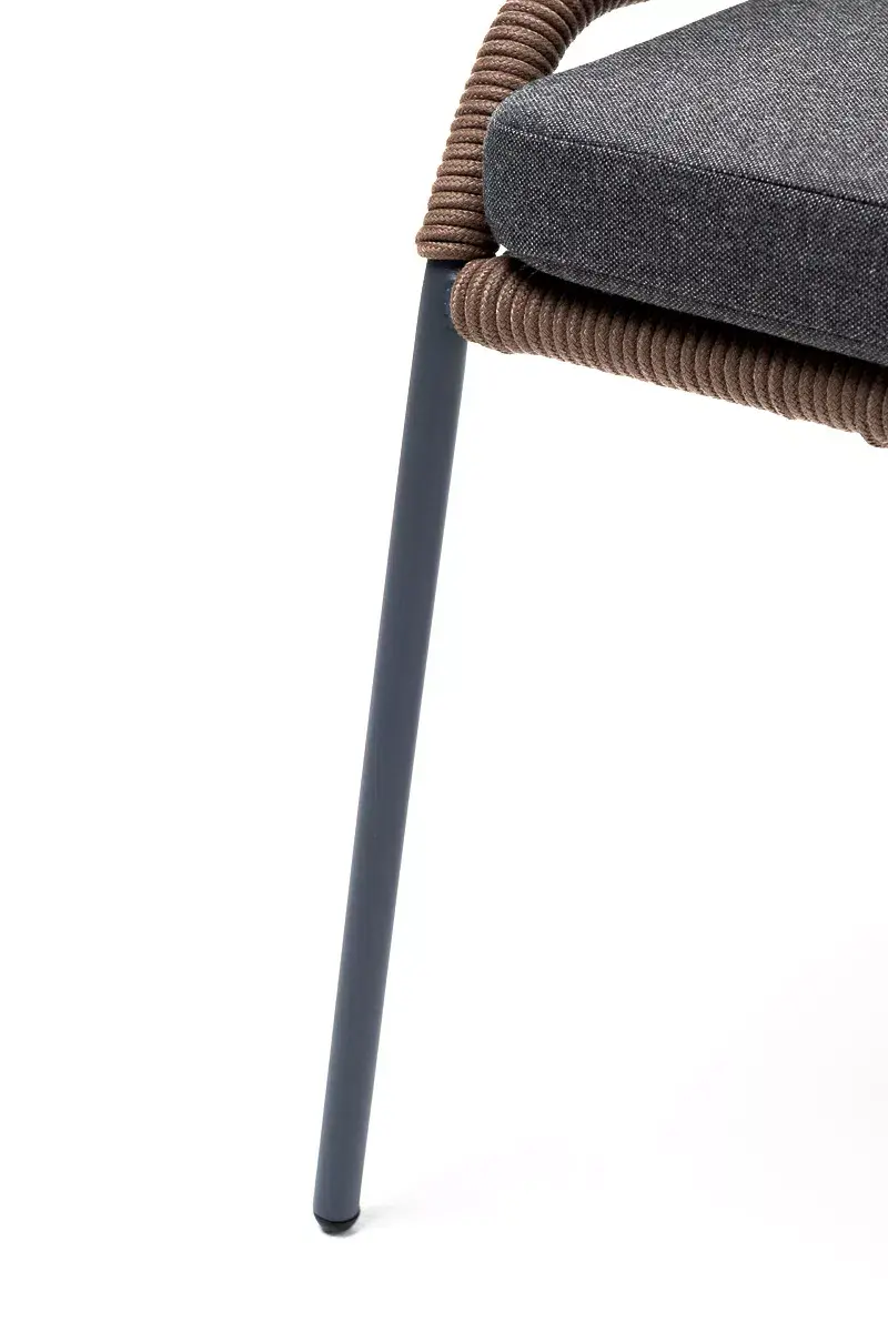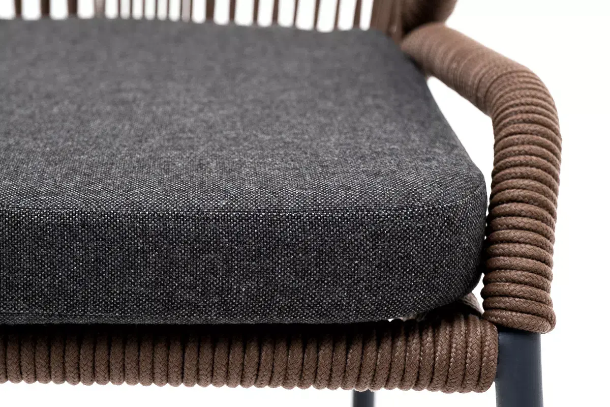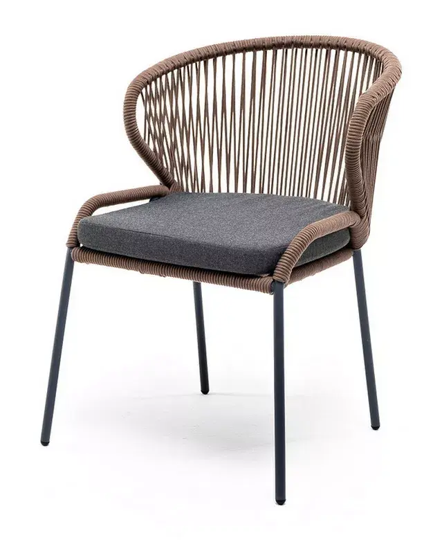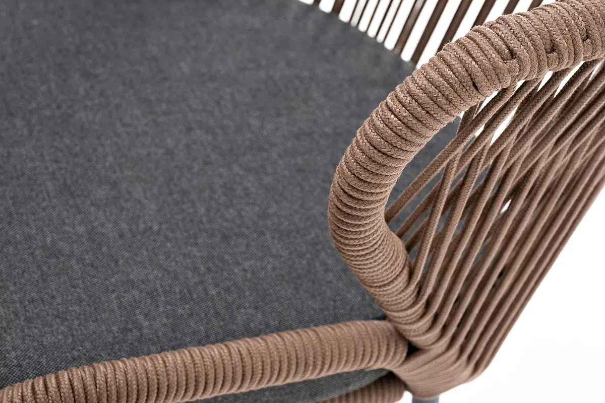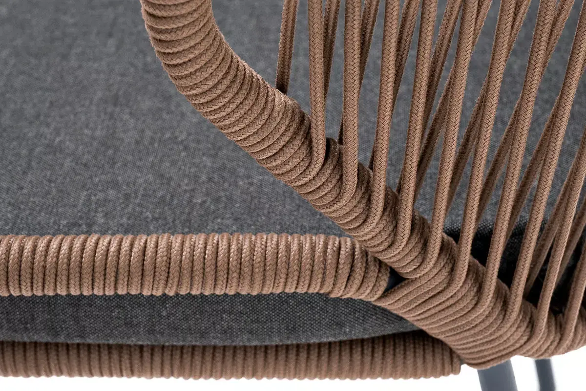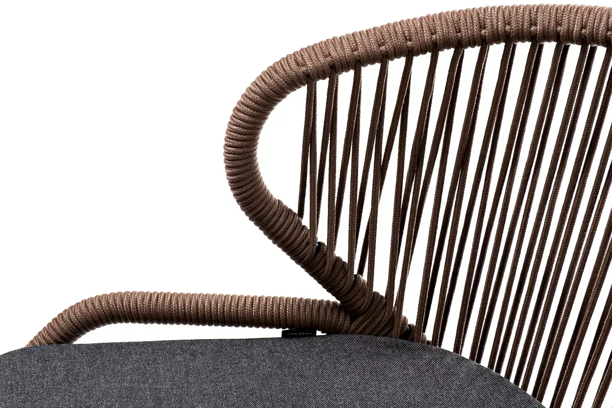 Изготовлен из алюминиевого каркаса серого (RAL7022) цвета, оплетенного вручную эластичными синтетическими лентами из высокопрочных полиэфирных волокон (роуп круглый). Цвет оплетки - коричневый.